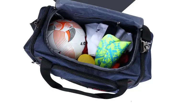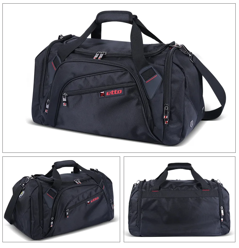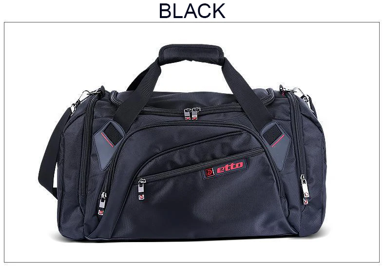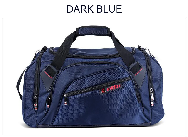 Бренд: Etto. Пункт: спортивная сумка. Пол: мужской, для мужчин и женщин. Материал: внешний нейлон 1680D, внутренний 210D полиэстер. Подходит для: тренажерного зала, фитнеса, спортивных состязаний, спорта на открытом воздухе, путешествий. Характеристика: водоустойчивое, большая емкость, независимая конструкция хранения ботинок, портативная сумка Цвет: черный, темно-синий. Размер (длина * ширина * высота) & Вес: ---- маленький размер: 50 * 28 * 30 см (приблизительно), около 1,1-1,2 кг. ---- большой размер: 54 * 24 * 33 см (приблизительно), около 1,2-1,3 кг.