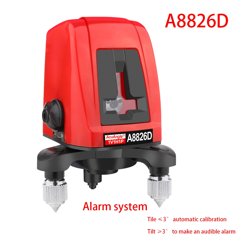 ACUANGLE A8826D лазерный уровень 2 линия 1 точка 1V1H Мини Портативный 360 самонивелирующийся крест красная линия Lazer уровень строительный инструмент диагностический инструмент с мягкой сумкой Особенности: * 1 перпендикулярная линия + 1 горизонтальная линия + 1 яркое пятно * Можно повесить на стену, любые доступные * Светильник, практичный, легко носить с собой * Retate 360 градусов свободы * Автоматическое выравнивание, Автоматическая сигнализация неровный продукт, умный удобный, более эффективный Характеристики: -Длина волны: 635 нм/красная линия 650 нм/точка -Точность: +/-2,5 мм/5M -Широкий Ширина по уровню поверхности: <2,5 мм/5M Предупреждение предупреждение о небалансе: звуковой сигнал -Температура:-5 ~ 45C -Размеры: 98x92x128мм -Светильник источник: полупроводник -Время стабильного равновесия: <5 сек -Диапазон автоматического самонивелирования: ± 3 ° -Лазерный угол:> 90 ° -Мощность: 2x1,5 V AA Батарея (не включает батарейки из-за пределов самолёта) -Вес: 0,21 кг -Посылка: розничная упаковка Посылка включает в себя: 1 x лазерный уровень ACUANGLE A8826D 1 х тканевый чехол Как использовать: -Установите инструмент на штатив или стабильную поверхность, Отрегулируйте инструмент. Если прибор слишком наклонен, дальность действия (3 градуса), лазерная трубка автоматически отключается (или если звуковой сигнал). -Переключатель ручки по часовой стрелке, чтобы открыть инструмент, излучая лазерный луч -Поверните инструмент, лазерный луч к цели. -Аккуратно Отрегулируйте ручку, найдите ориентацию на работу. -Когда работа закончена, поверните ручку переключателя против часовой стрелки, выключите инструмент. -Светильник с точечным дизайном, обеспечивает удобство конструкции.