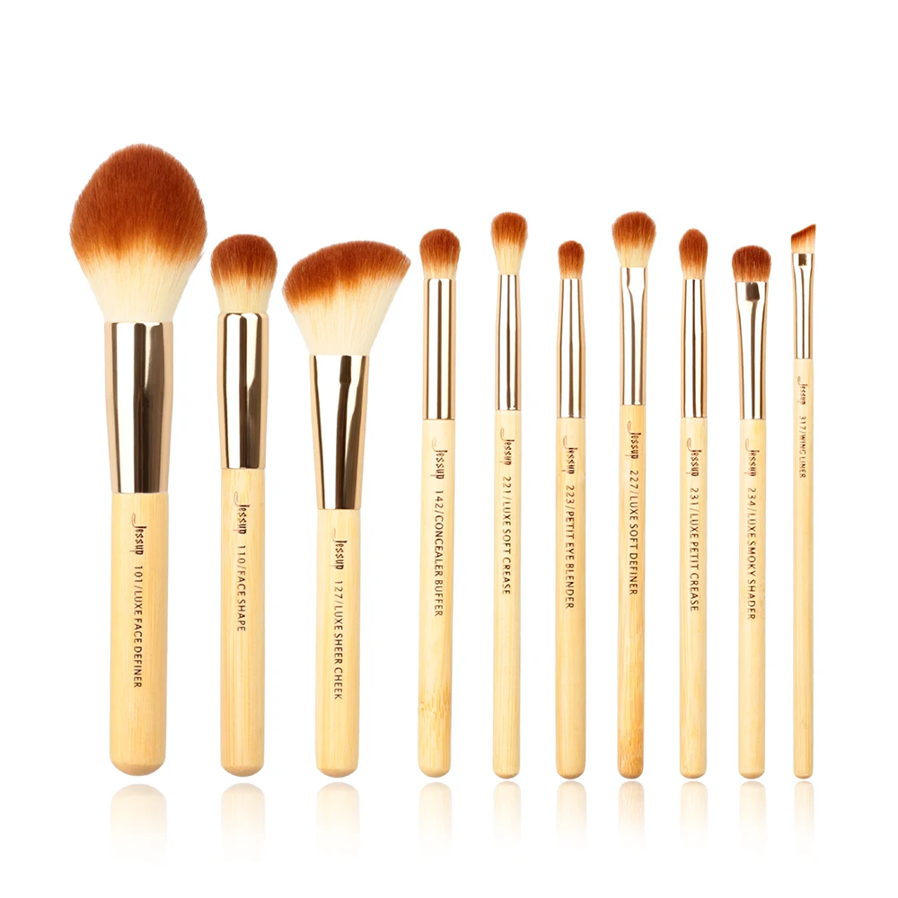 Jessup 10 шт. кисти для макияжа красота бамбук Профессиональный maquiagem Профессиональный completa основа для макияжа Пудра Тени для век кисти T143