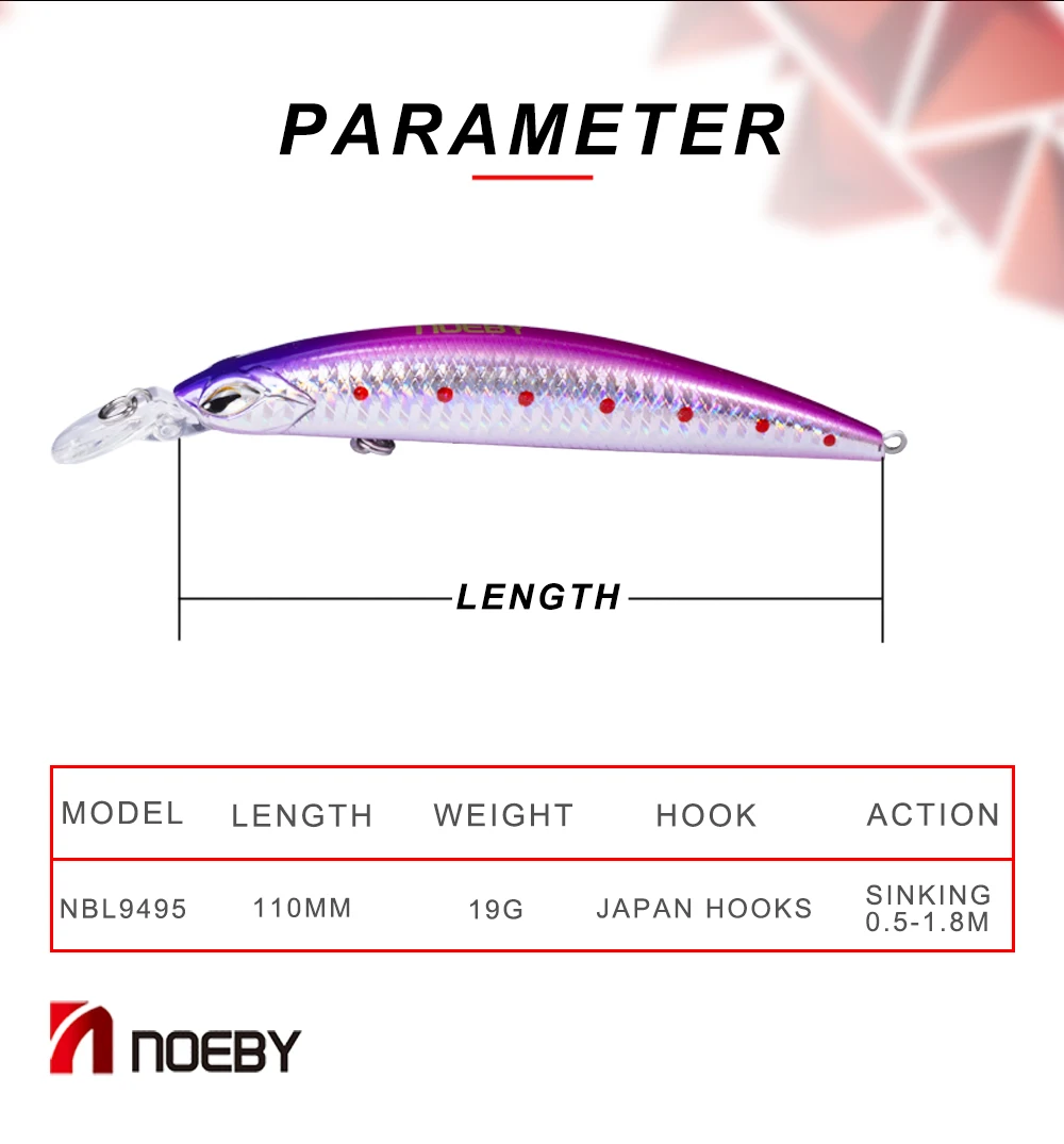 Приманка-карандаш NOEBY рыболовная приманка 110 мм 19 г погружающаяся 0,5-1,8 м Iscas Artificiais Pesca Leurre Peche Wobbler рыболовные снасти для ловли карпа Особенности: 1. Тип: приманка-карандаш 2. Цвет: как показано на картинке, может быть небольшая разница в цвете 3. Действие: опускается на дно 0,5-1,8 м 4. Вес: 19 г 5. Длина: 110 мм 6. Свинцовые блоки и магнит внутри 7. Шарп тройные Крючки из Японии В посылка включает в себя: 1 ПК жесткая приманка для рыбалки карандаш