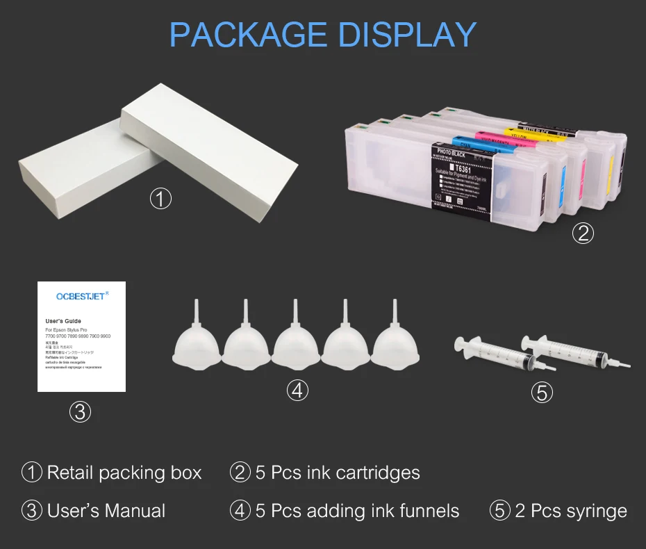 | Подходящие принтеры | Для Epson Stylus Pro 7700 Для Epson Stylus Pro 9700 Для Epson Stylus Pro 7710 Для Epson Stylus Pro 9710 |