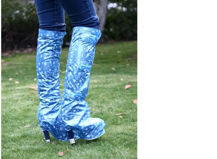 Женская обувь; Водонепроницаемые на высоких каблуках; Сапоги до колена с принтом; ПВХ; Дождевик; Легко носить с собой; Willow Valley