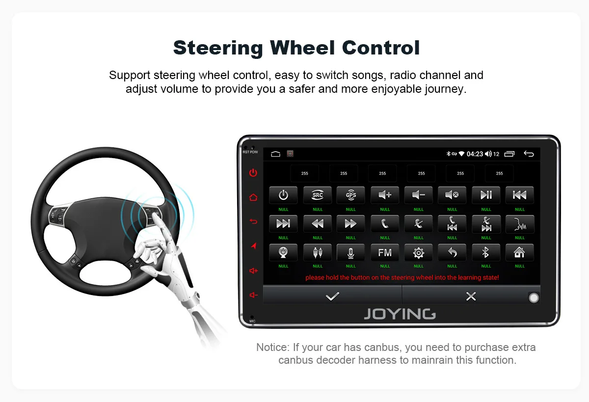 1. ОС: Android 10,0 2. Процессор: UIS7862 восьми-ядерный 1,8 ГГц двухъядерный процессор ARM Mali G52 614,4 МГц 3. ОЗУ: 4 Гб; ПЗУ: 64 Гб. 4. Подключение телефона: для iPhone, вы можете подключить Carplay и Android auto через bluetooth или USB кабель, он поддерживает iOS13 или более низкую версию iPhone. Для телефона android, вы можете подключить android auto с помощью usb-кабеля, он поддерживает android 10,0 или более низкую версию телефона. 5. Интернет: вы можете подключить sim-карту непосредственно к Интернету для серфинга, пожалуйста, отключите PIN-код sim-карты на вашем смартфоне перед использованием. Вы также можете использовать ваш смартфон поделиться Wi-Fi точка доступа к Головному Устройству. Он поддерживает 5G 5G Гц WIFI 6. Gps-навигация: он поддерживает GPS и ГЛОНАСС, поставляется с автономными картами, вы также можете установить другие карты. 7. Версия Bluetooth 5,1, поддерживает bluetooth телефонные звонки и музыку. 8. Головной блок поставляется с ISO жгутом, есть KEY1 и KEY2 на жгуте, они являются проводами управления рулевого колеса, если ваш автомобиль не имеет Can-Bus, вы можете узнать, что провода управления рулем вашего автомобиля подключаются соответственно, тогда кнопки управления рулем вашего автомобиля будут работать хорошо. 9. Поддержка обратной камеры/фронтальной камеры/OBD2/TPMS/DAB +, вам нужно купить отдельно. 10. Чип усилителя: TDA7851. Радио чип: TDA7786 Чип DSP: ROHM32017. Новый JOYING блок теперь поставляется с оптическим SPDIF цифровой аудиовыход * коаксиальный цифровой выход. Для максимального качества звука вы можете напрямую подключить внешний усилитель/DSP к цифровому выходу SPDIF; Если ваш внешний усилитель/DSP не поставляется с входом SPDIF, вам нужно будет подключить усилитель/DSP через FL/FR out & RL/RR out.