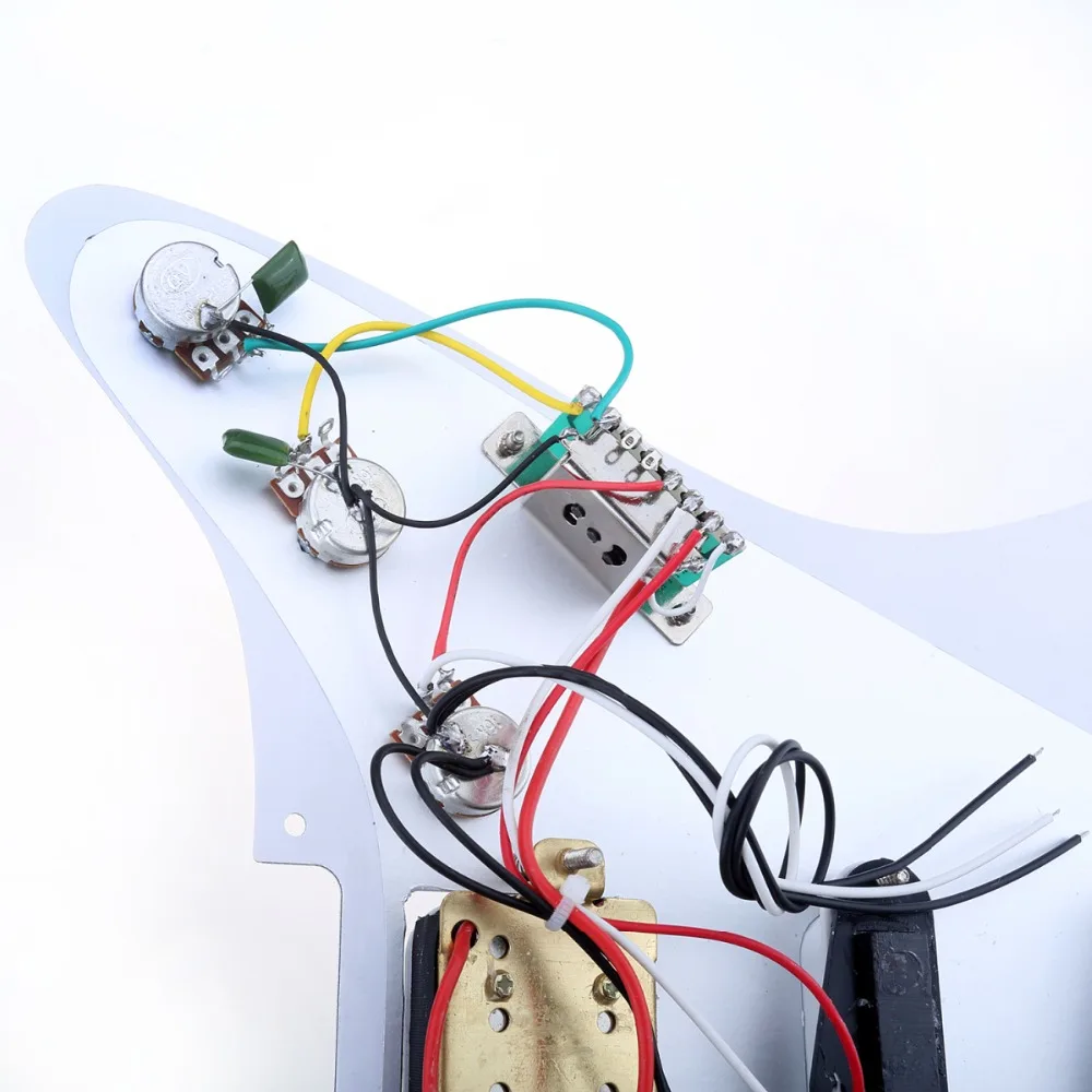 ОсобенностиПодходит для стандарта США/Мексики, обвайзера или кальмаров, таких как сродство серии и т. Д., хорошая замена или вариант обновления11-отверстия Стандартный HSS Страт Стиль накладку, большая задняя защитная оболочка2 одиночных катушки и 1 набор мостовых пикапов humbucker, керамический магнит, воск в горшке, выход: 5,7 K Ом для шеи и середины, 12,5 K Ом для мостикаУстановленные стандартные ручки, переключатели, пикапы и Предварительно Проводные цепи, включая винты для защиты от кражПожалуйста, проверьте карту проводки на изображениях нашего продукта. Белый провод горячий, любой черный провод может быть заземлением, затем другой черный провод для выхода гнезда отрицательного электродаПосылка в комплекте1 шт. загруженный маркер