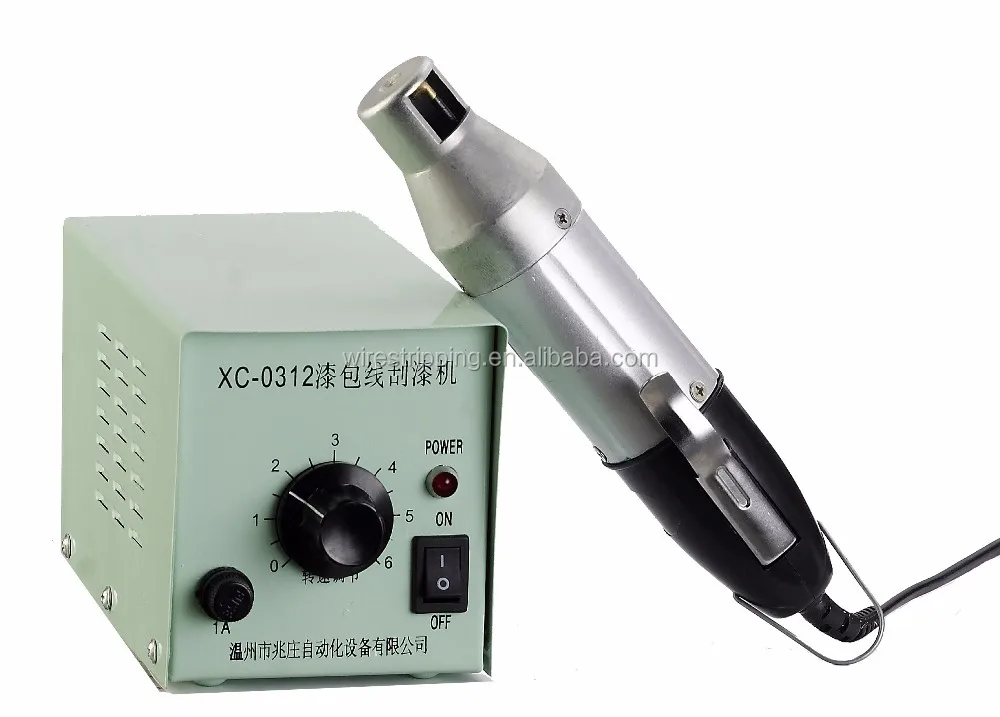 Это занимает тайваньскую передовую технологию удаления краски, она может регулировать длину зачистки краски и применяет различные эмалированные провода, может быстро и очистить удалить краску полностью заменяет традиционную ручную работу, например: наждачная бумага для соскабливания, жидкая лекарственная коррозия. Это не только значительно повышает эффективность, но и сильную сварку. Это идея оборудования для катушки промышленности и обслуживания, как электрическое оборудование, электроника, приборы, трансформаторы, бытовая техника, катушки электрические инструменты и так далее. Он в сочетании с регулятором, двигателем и скребком для краски, принимая светильник, прочный переключатель. Это эффективный удобный новый стабильный.