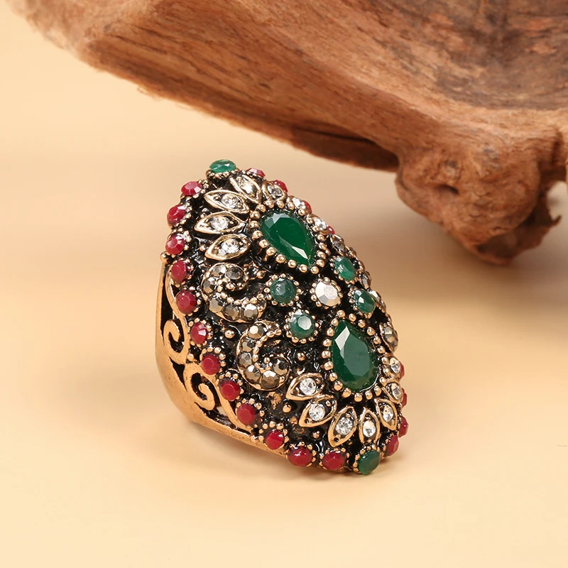 Kinel Горячее предложение уникальное Винтажное кольцо для женщин старинное золото Цвет этнические Свадебные украшения красочное кристаллическое кольцо вечерние подарки