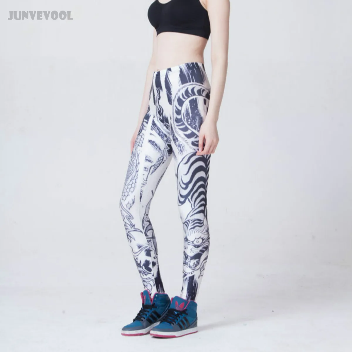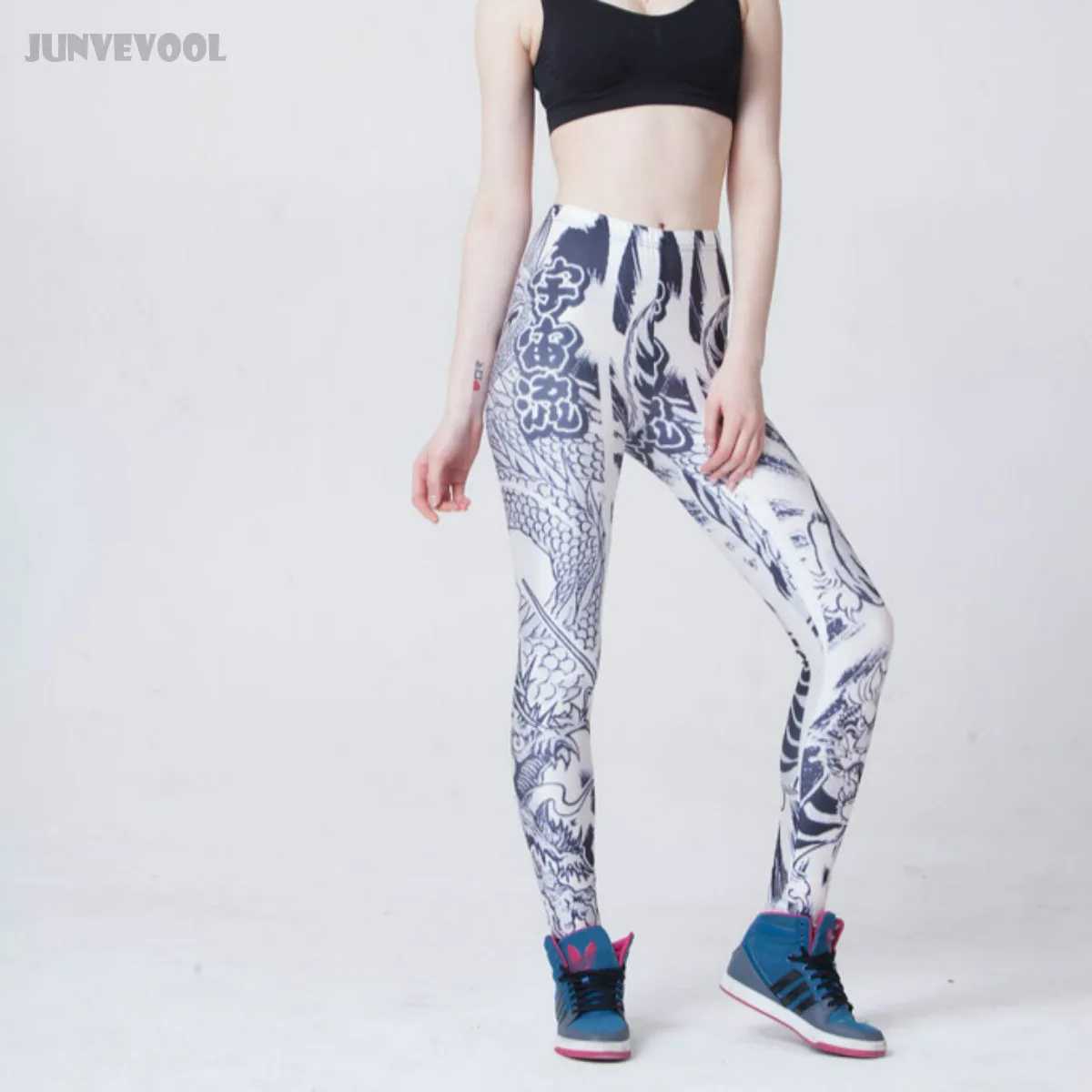 Обтягивающие Брюки для женщин с рисунком тату, белые брюки для женщин, сексуальные обтягивающие леггинсы с 3D драконом, эластичные джеггинсы, облегающие узкие брюки