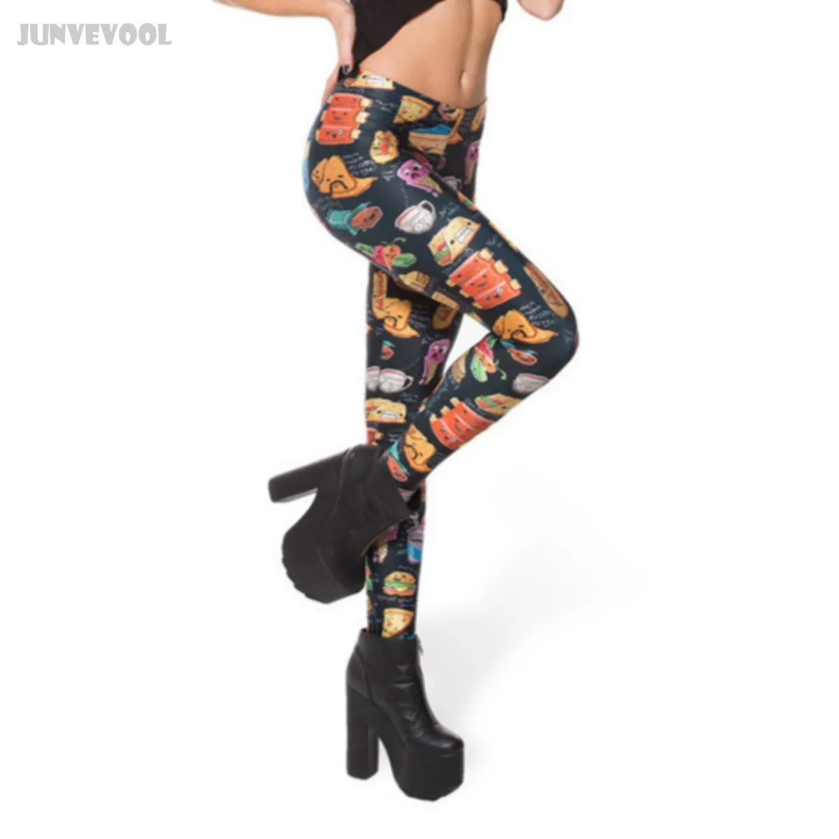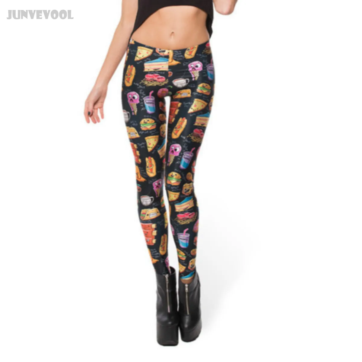 Леггинсы для фаст-фуда, женские мягкие обтягивающие штаны, Стрейчевые однотонные черные Капри, джеггинсы, размер S-4XL, для женщин, для пиццы, с принтом торта