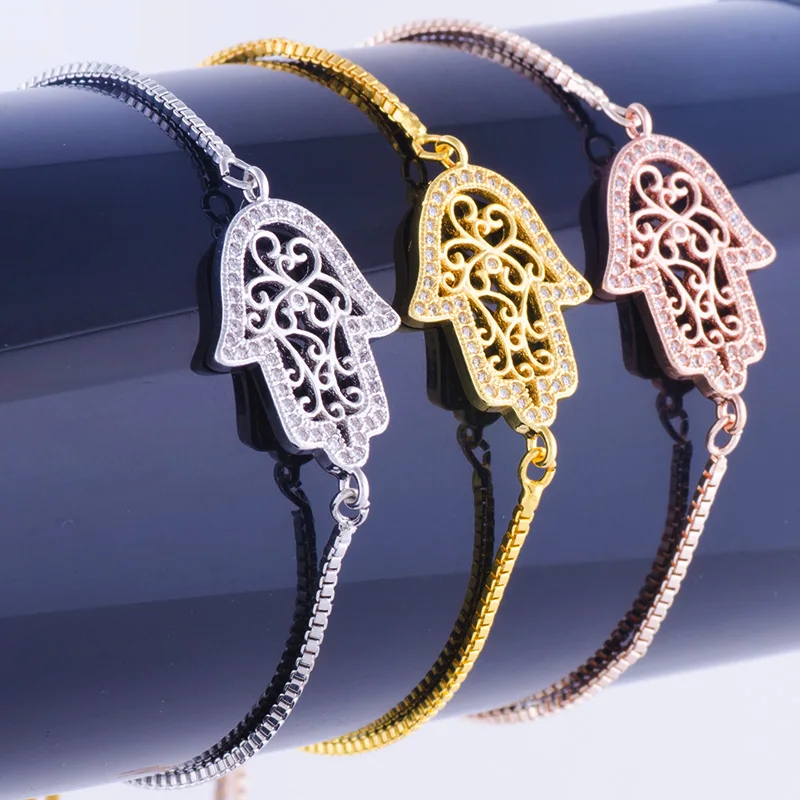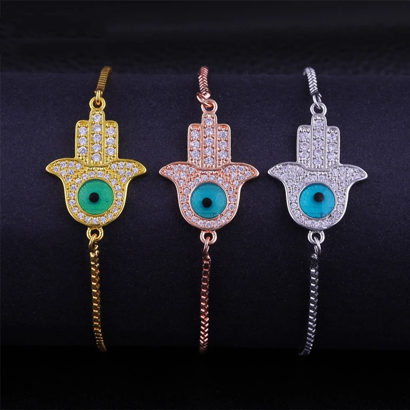 Juya регулируемые цепочки золото/серебро/розовое золото Подвески в виде руки хамсы браслеты «Фатима» для женщин и мужчин греческие сглаза ювелирные изделия