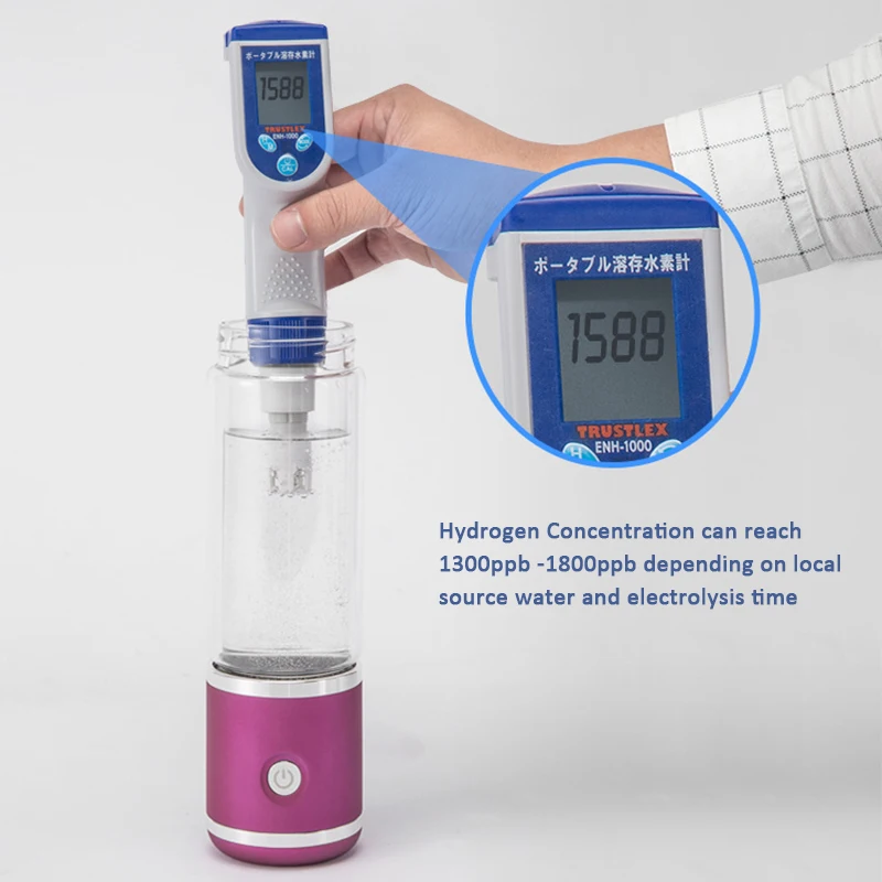 Portable 300ml high dissolved hydrogen up to 1800ppb no ozone SPE/PEM Hydrogen Generator Water Bottle