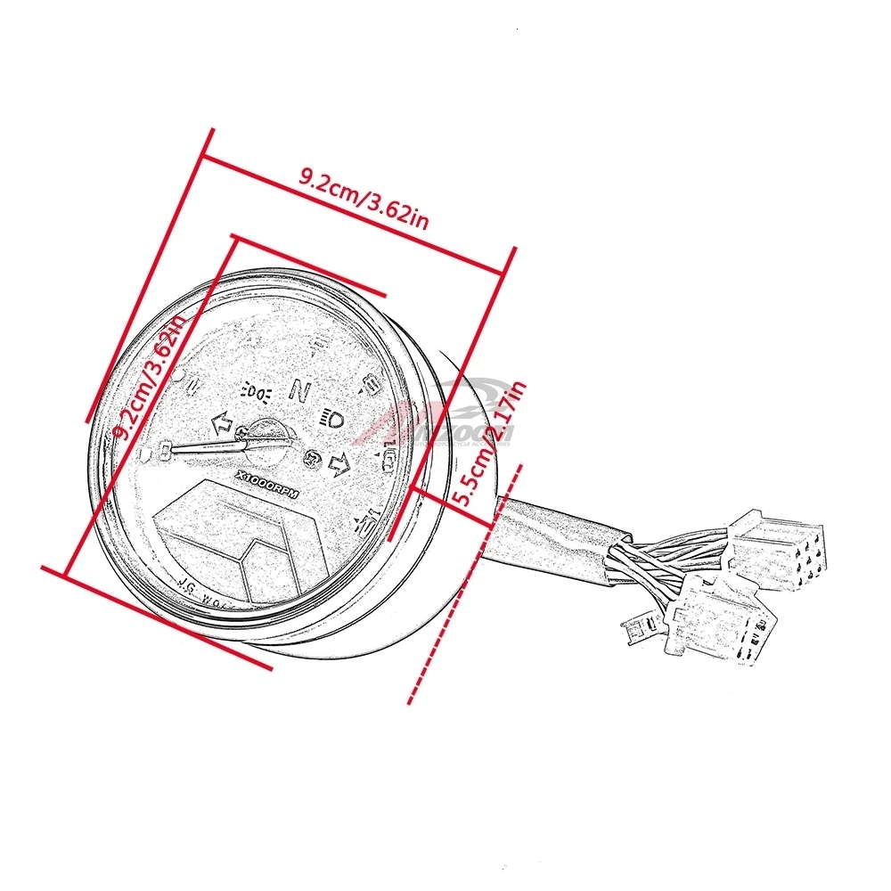 • Состояние на 100% абсолютно новый; • Материал:АБС-пластик; • Цвет: черный корпус + прозрачные линзы • Размер:Размер: 92*77 мм/3,62*3,03 дюйма (прибл.) •Диапазон отображения скорости::0 ~ 199 км/ч/0 ~ 199mph;(Ошибка + 10%) •Диапазон тахометра: 0-12000 об/мин; •Диапазон отображения ODO: 0 ~ 99999,99 км/0 ~ 99999.99mi,Минимальная 0,1 км;(Ошибка + 5%) • Функция индикации: Левый Сигнал поворота, дальний свет, Правый Сигнал поворота,Габаритные огни, N огни