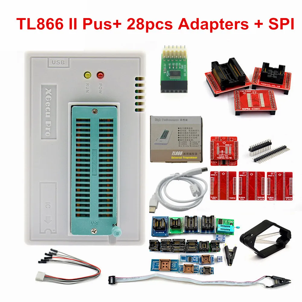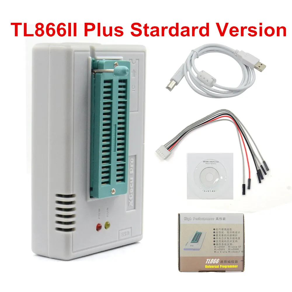 Оригинальный Новый TL866II PLUS TL866 обновленный MiniPro универсальный высокоскоростной USB программатор высокая производительность 100%Описание товара1. Высокоскоростное Программирование с одним чипом серии AVR2.PIC серии 8-битный микроконтроллер программирования3. Серийное Программирование серии 24/25/35/45/934. Высокопроизводительный программист BIOS5. Программирование автомобильных компьютерных чипов. Поддержка WIN2000 / WINXP / WIN2003 / WIN2008 / WIN VISTA /WIN7/WIN8/WIN10(32 бит и 64 бит)7. Номер версии программного обеспечения: V7.058. suport более 15000 чипов (этот номер сохраняет обновление)Многофункциональность: TSOP/32/40/48,TSOP/32/40/48 (с черным адаптером для вентиляции),TSOP40A,TSOP48 toSOP44,SOP56,TSOP32,TSOP40B,SOP44,SOP8 и SOP28.XGecu TL866II плюс USB программатор поддержка 15000 + IC SPI Flash NAND EEPROM 8051 MCU PIC AVR GALПрограмматор Tl866II PLUS-это улучшение программатора TL866CS/A, разница гораздо выше скорости программирования (до 2x) памяти высокой емкости. Поддерживает режим мультипрограммирования (до четырех). Хорошо разработанный дешевый профессиональный программист, производство высокой плотности SMD технологии, унифицированный пользовательский интерфейс, простой в использовании, полностью функциональный, надежный программный Запуск прикладного программного обеспечения, ультра-маленький код-работает быстрее, поддерживает двуязычный (английский и китайский)