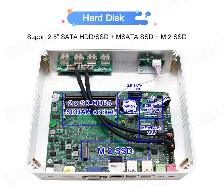 Eglobal Core i5 7200U Kaby Lake Мини компьютер Win10 Barebone Мини ПК HTPC Intel HD Graphics 620 Wifi 4USB3.0 + 4USB2.0