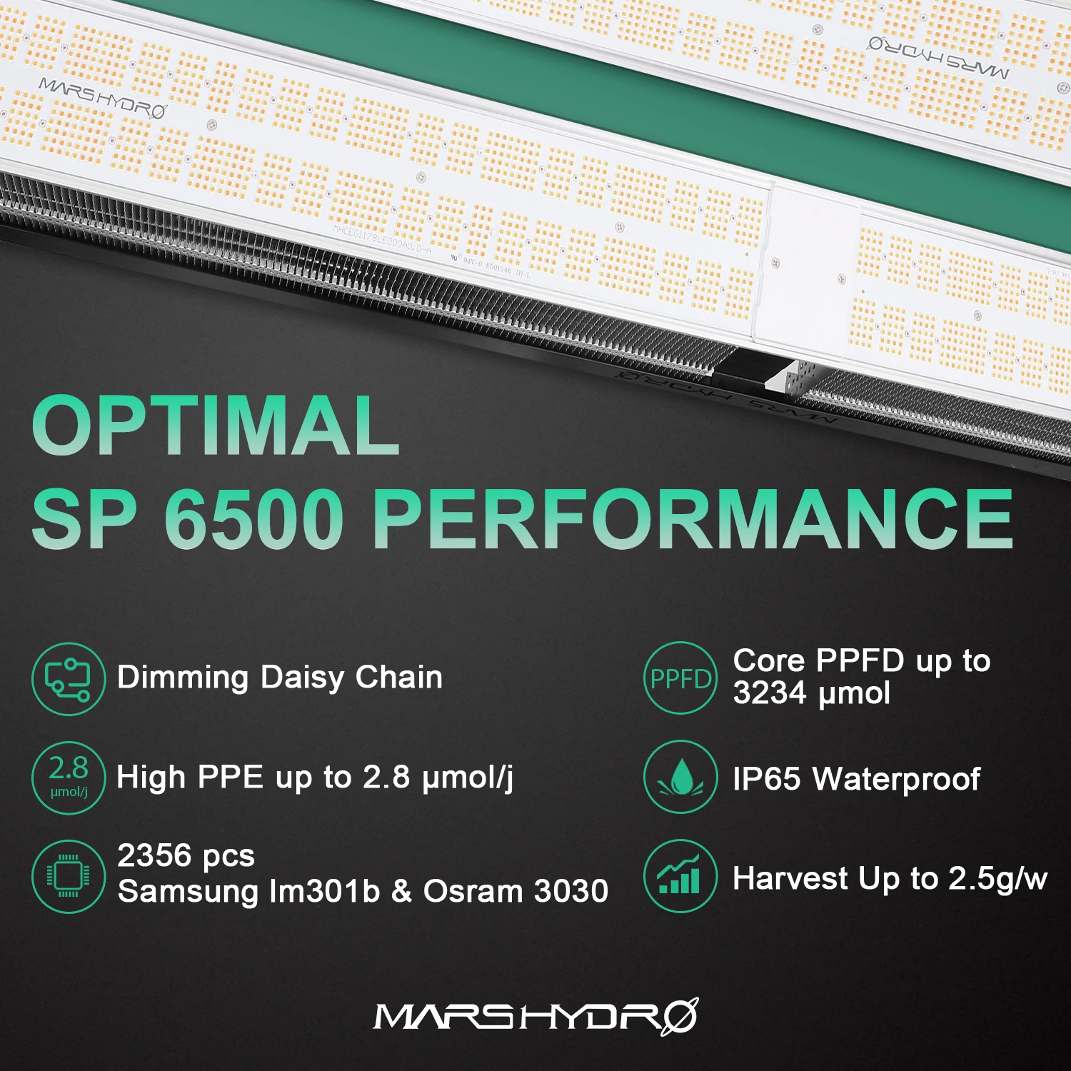 Высокая PPFD при температуре не выше 2,8 мкмоль/j, средняя доходность на 2,5 g/w, повышаем вашу выход 50% или больше по сравнению со старым blurple и HPS свет.