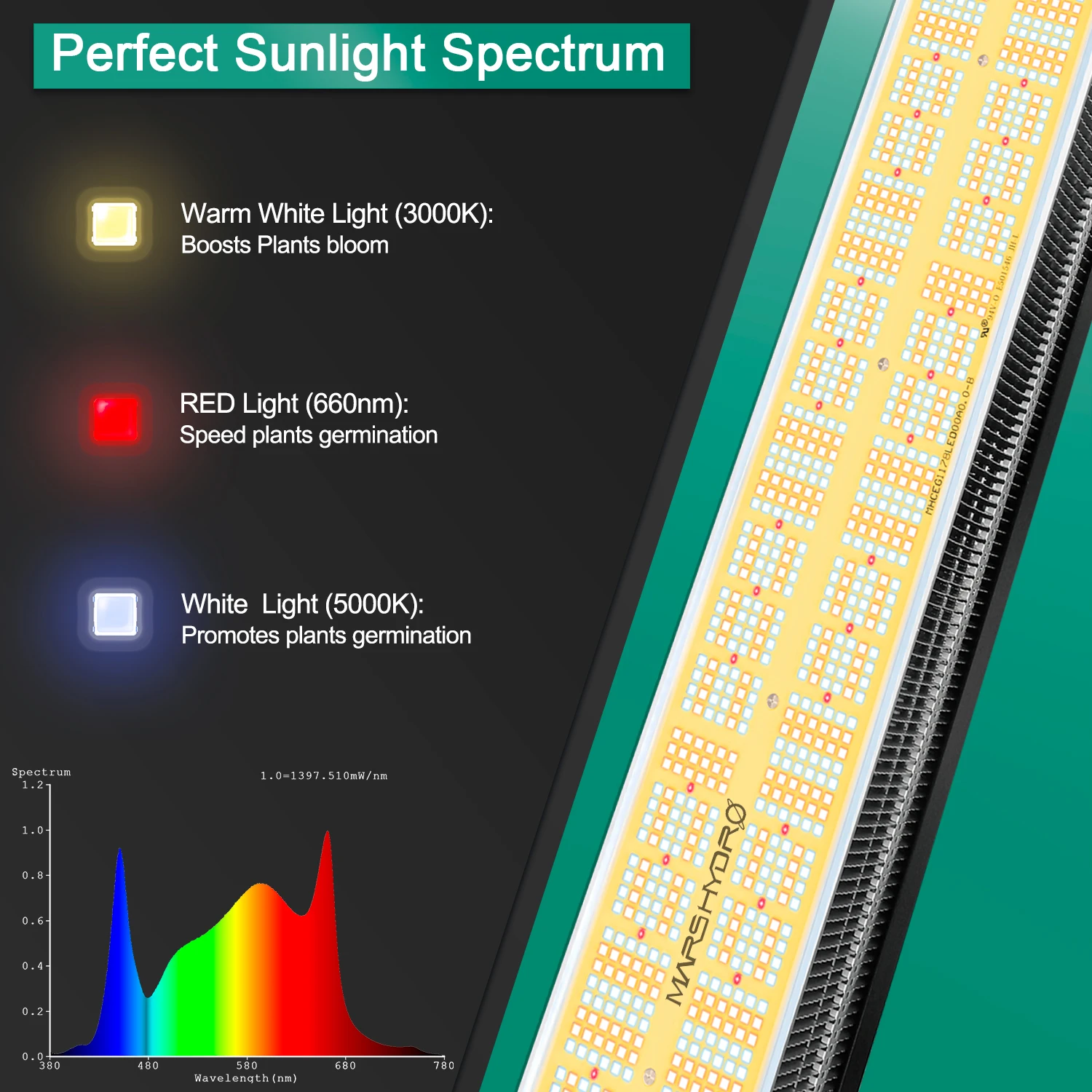 · Отсутствие конструкции вентилятора, отсутствие шума. Целый слой алюминиевого радиатора обеспечивает оптимальное рассеивание тепла. Съемный драйвер и Удлинительный шнур 2 м помогают снизить температуру в растущей комнате.