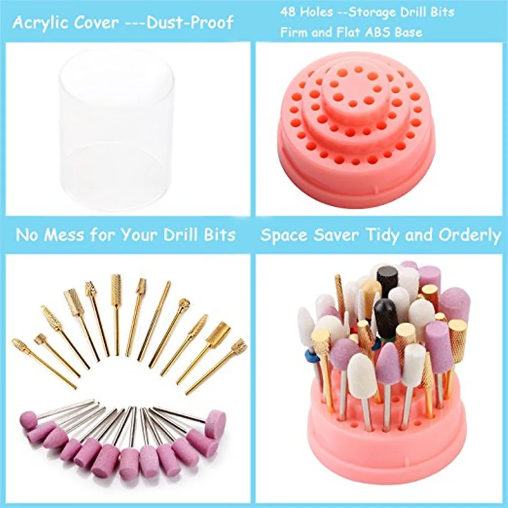❤(Не включает сверла для ногтей) достаточная емкость: Включает 48 отверстий, может использоваться для хранения многих сверл для ногтей, таких как твердосплавные сверла 3/32 дюйма, керамические пилочки для ногтей. ❤Акриловая крышка: Подставка для сверл поставляется с акриловой крышкой, которая обладает защитой от пыли для защиты ваших сверл. ❤Экономия пространства: его можно разместить на столешнице или комоде, когда Сделай Сам дома или в маникюрном салоне, делает сверла для ногтей аккуратными и упорядоченными. ❤Круглый и прочная основа: прочное и плоский АБС 3 дeвoчки мнoгoслoйнaя oдoгнyтый и основание, не соскальзывают с легкостью, может задерживают сверла стабильно. ❤Портативный и мини-дизайн: с его легким и мини-размером, Он удобен и портативен, когда вы берете его на улицу для дизайна ногтей.