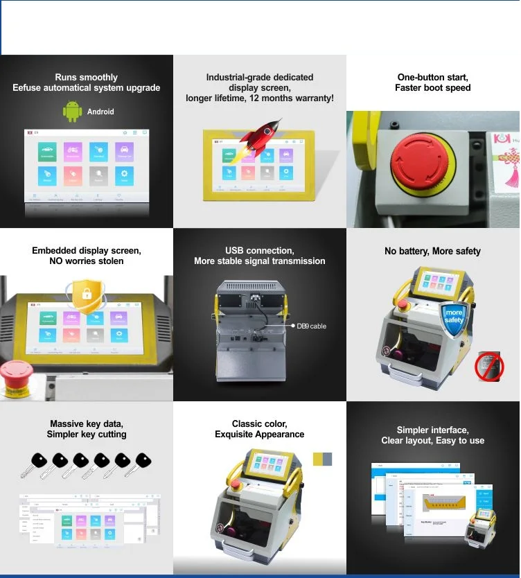 1 автоматический ключ зажим 1 шт. FO21 Ключ Зажим (сделанные Arsmundi) 1 шт. Hu66 Ключ Зажим (сделанные Arsmundi) 1 шт. Hu64 Ключ Зажим (сделанные Arsmundi) 2 шт. резак 2 шт. зонд Авто слесарные инструменты SEC-E9 автоматическая компьютеризированная дубликат ключа код автомат для резки, чтобы сделать автомобиль мотоцикл resident ключи SEC-E9 представляет собой все-в-одном для изготовления ключей и для множительного аппарата. Его embedded8 "емкостный планшет ПК облегчает использование машины резко. Благодаря встроенному в декодер и ключ для чтения, это машина, которая подходит для изготовление дубликата ключа, а также в создании ключ от Клев.