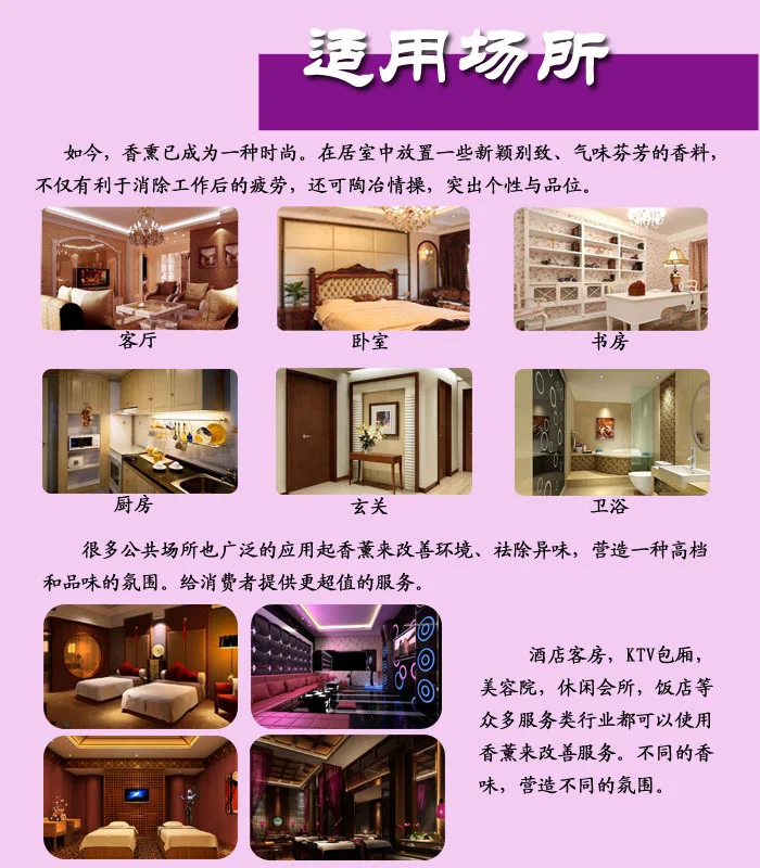 И потратили и потратили ограниченные пространства, такие как KTV, игра в маджонг, домашнее животное, гардероб, Ковчег для обуви, туалет, офис, автомобиль, можно использовать флаконы духов для устранения запаха и предотвращения воздействия вторичного дыма.