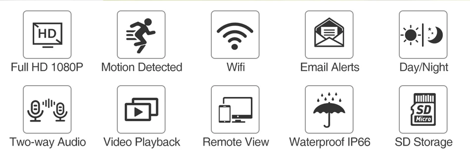 Примечание: Выберите источник питания и tf-карту, что вам нужно!Только камера 1080P: посылка только с камерой 1 *. (не включает источник питания)1080P с 12V1A: посылка с 1 * камерой, 1 * 12V1A источник питания.1080P 12V1A 32 Гб: посылка с 1 * камерой, 1 * 12V1A источник питания, 1*32 Гб TF карта.1080P 12V1A 64 Гб: посылка с 1 * камерой, 1 * 12V1A блок питания, 1*64 Гб TF карта.Посылка включает: 1x беспроводная Wifi камера 1x Руководство пользователя 1 винты (подарок) 1x водонепроницаемый разъем для кабеля (подарок) Дополнительный источник питания 32G / 64G TF карта на выбор Важное примечание:1. Чтобы установить tf-карту, необходимо открыть камеру, узнать слот для tf-карты на задней панели камеры, свяжитесь с нами для получения инструкции, если у вас есть какие-либо проблемы, чтобы исправить это.2. Поддерживает веб-сайт tnterface в IE, cloud(XMEYE.NET) в IE и т. Д.3. Эти камеры поддерживают подключение в CMSПоддерживает только сеть 2,4G WIFI , 5G сеть WIFI не поддерживает ed!Двусторонняя аудиосвязь в режиме реального времени Камера имеет встроенный микрофон и динамик.Никогда не пропустите ни минуты с вашей семьей. ![]() Обнаружение движения и оповещение по электронной почте Камера отправит Вам письмо автоматически, если обнаружено какое-либо движение, необходимо установить в приложении iCSee.