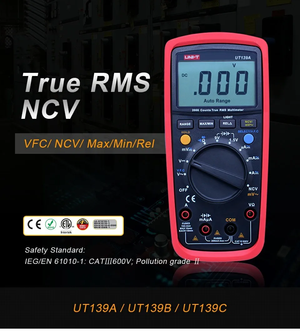 Серия UT139-Цифровые мультиметры CAT III 600V, предназначенные для электриков. Его функция NCV может эффективно проверять электрическое состояние путем измерения интенсивности поля EM. Новые модели UT139E/S включают специальные функции, такие как LoZ (ACV) для измерения напряжения ghost'. Его встроенный 31 в поп упаковке, аналоговая панель также дает электрики лучшее визуальное отображение результатов измерений. UT139S построен с черным дисплеем EBTN и является идеальным счетчиком для работы в темных условиях.