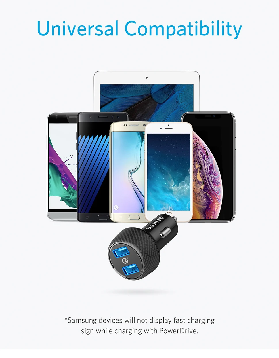 Anker PowerDrive Speed 2 39 Вт автомобильное зарядное устройство с двумя USB портами быстрая