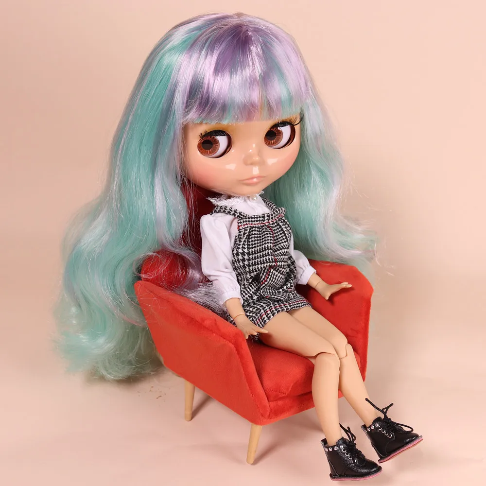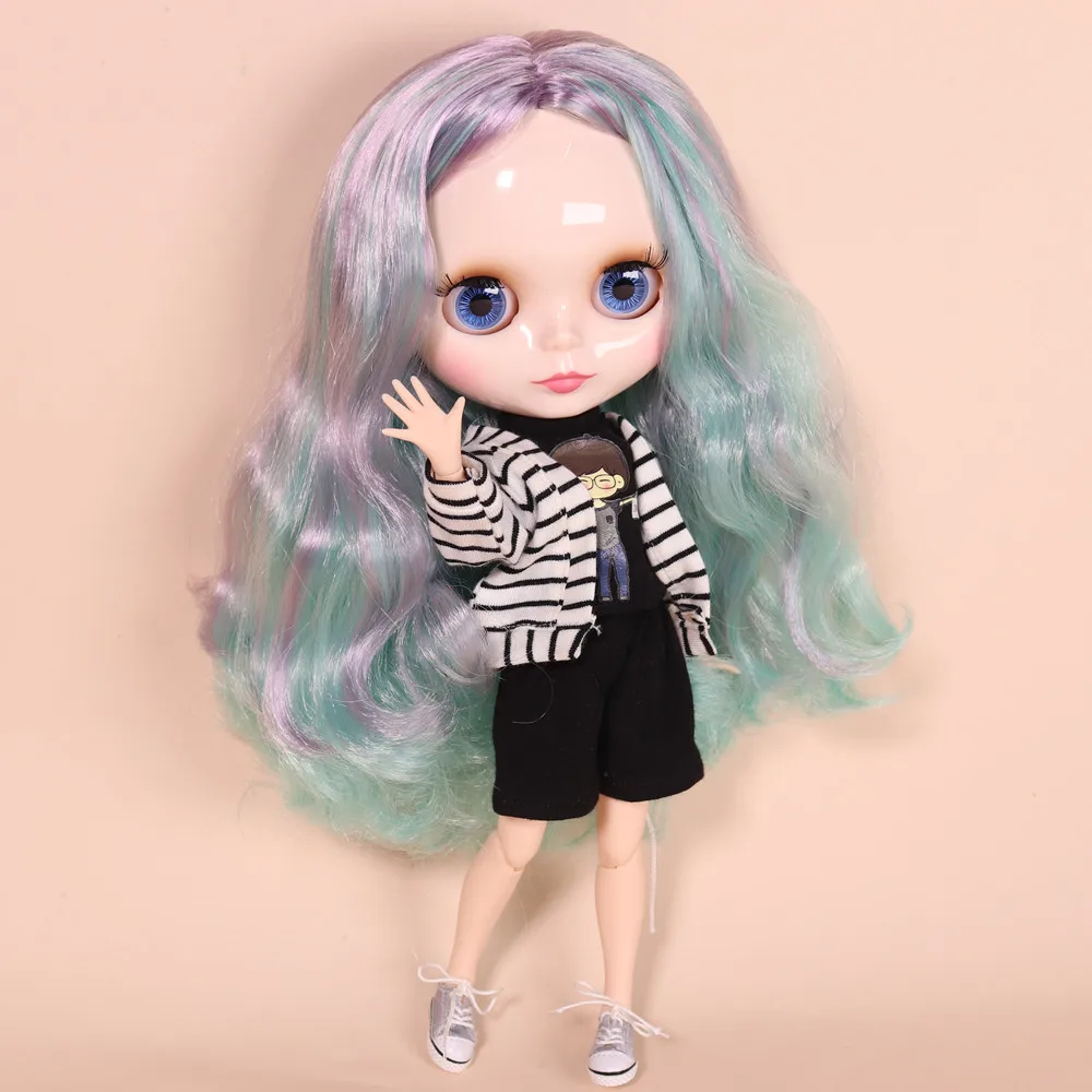 Она получила фиолетовые Смешанные Мятные волосы и большой Соединительный сустав в области груди тела. (как на картинке)