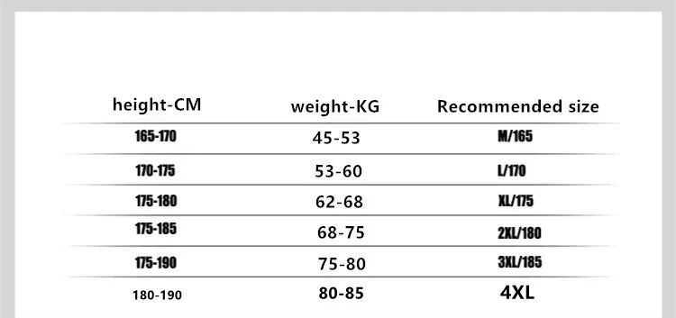 Вы можете проверить таблицу размеров ниже, чтобы выбрать правильный размер для вас.