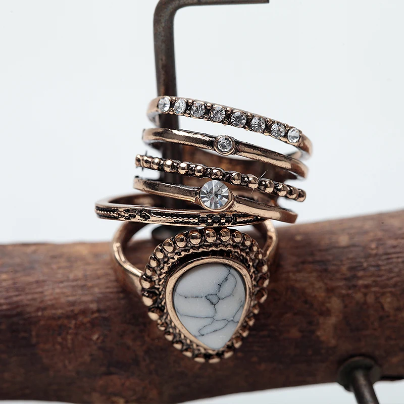 Модный винтажный набор колец, горячее стильное Золотое простое кольцо, бирюзовое кольцо на палец, бохо миди-кольцо в подарок MYC13051