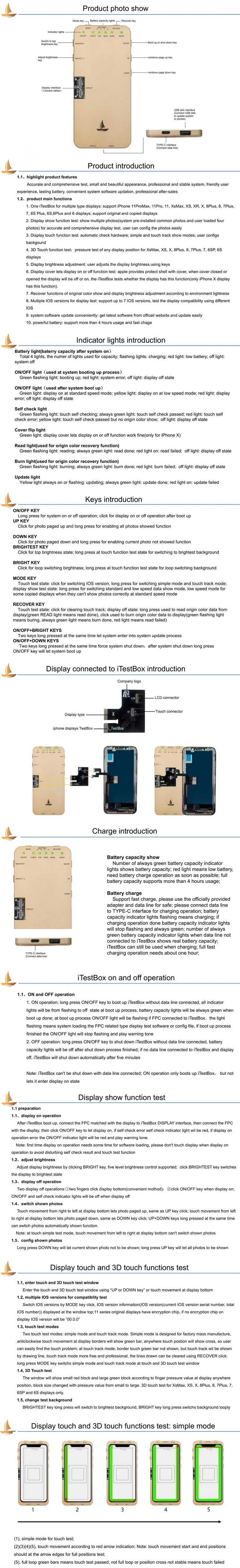 2. Шесть функций: a. Тест на изображение b. Сенсорный тест c. 3D сенсорный тест d. Тест на переворачивание e. Тест на яркость f. Восстановление данных (светильник и оригинальная калибровка цвета изображения)