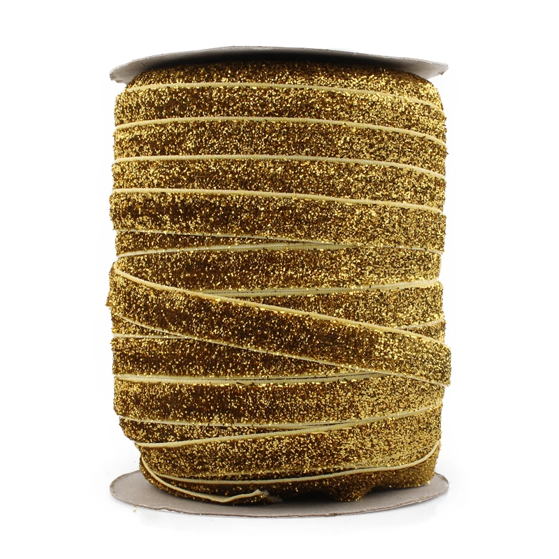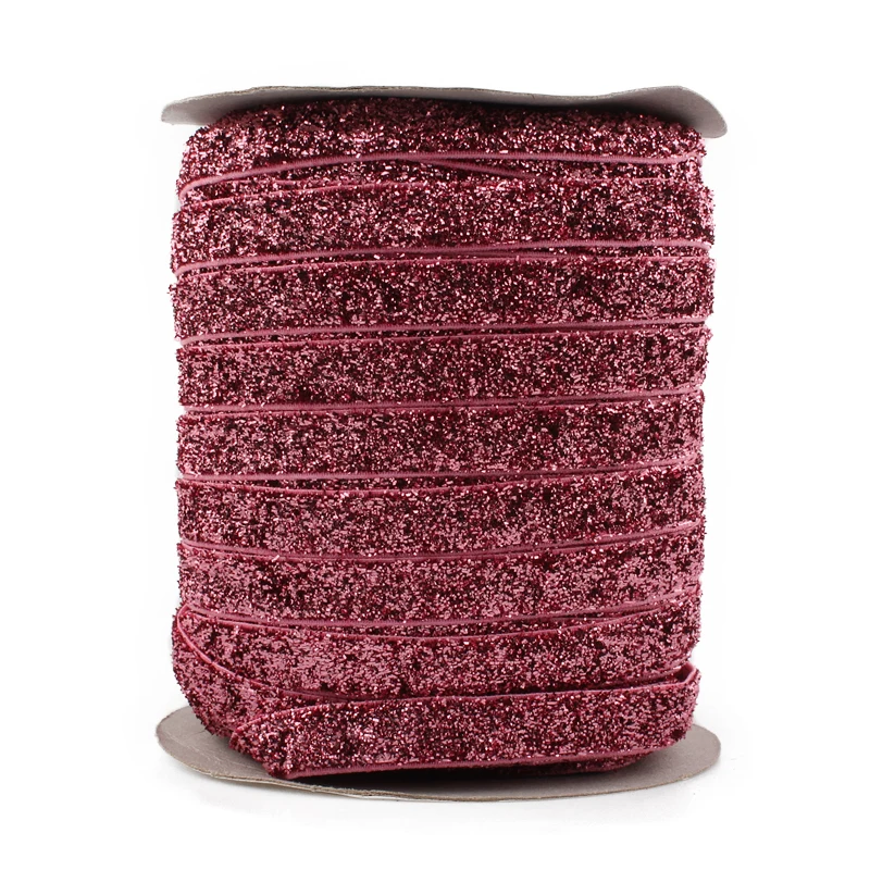 Название:1 шт. = 50Y 3/8 "= 10 мм OEM высокогибкий эластичный Блестящий бархатный Ленточные украшения однотонный металлический нейлоновый ремешок для аксессуаров для волос