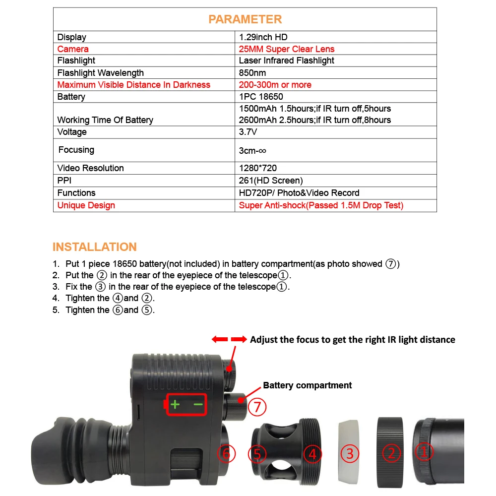 Горячая новинка снайперская наружная охотничья оптика ночного видения прицел тактический прицел с зарядным устройством для батареи ЖК и ИК-фонарик