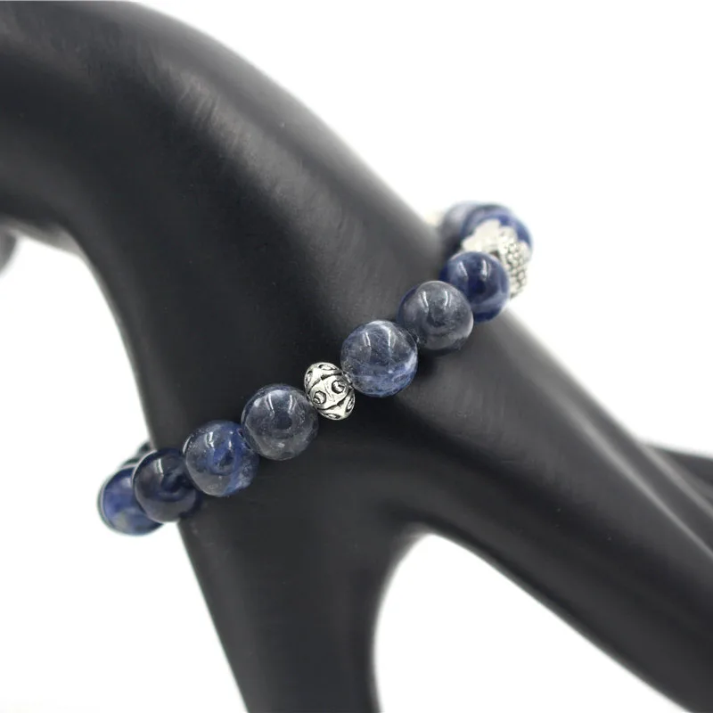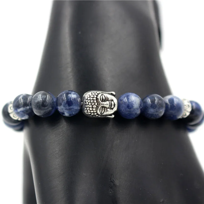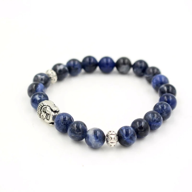 Модный натуральный содалитовый браслет из бисера, античный серебряный браслет Будды для йоги, эластичный браслет для женщин и мужчин Pulseira Masculina