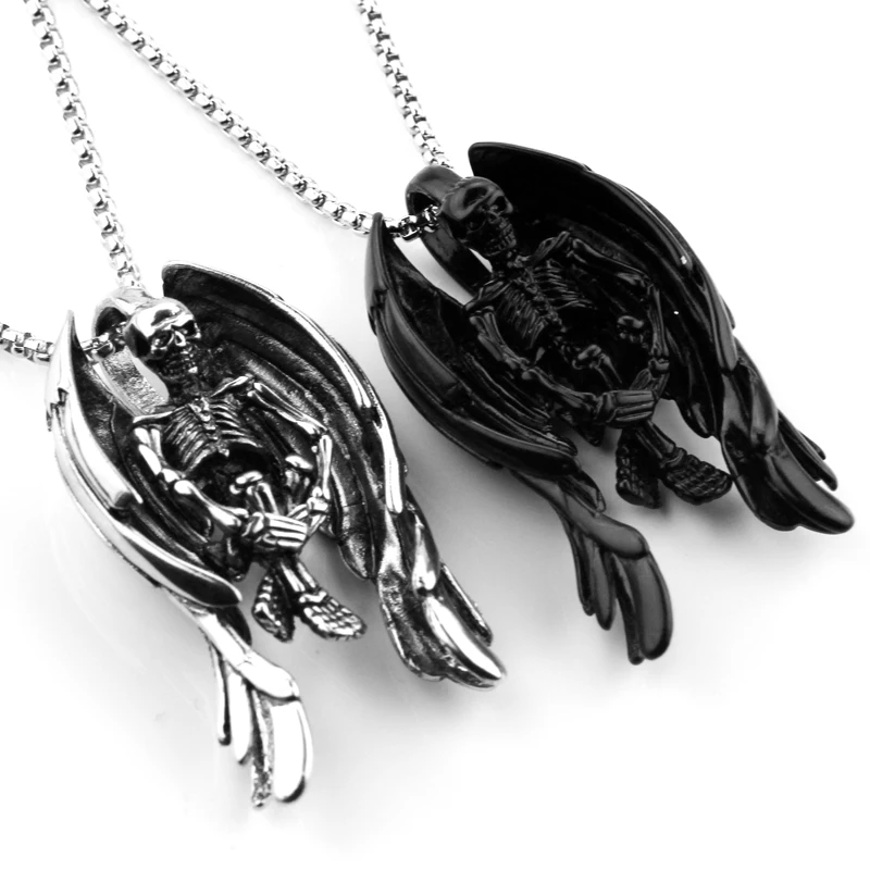Винтажные ожерелья со скелетом, черепом и крыльями, стильные ожерелья и подвески, черные ожерелья с цепочкой для мужчин, ожерелье со скелетом, Ювелирное Украшение для ночного клуба