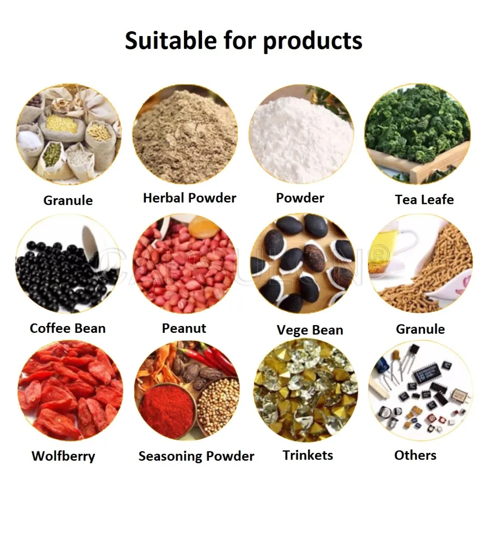 3. интеллектуальный дизайн, простая работа, инфракрасный индукционный переключатель, индукционный блок питания, количественный точный датчик, 3 уровня виброрезки, регулируемый, микрокомпьютерная материнская плата более прочная и энергосберегающая, быстрая скорость, небольшая ошибка, высокая производительность, наполнение, мешок, минуту около 10-30 упаковки в зависимости от различных предметов, количественных.