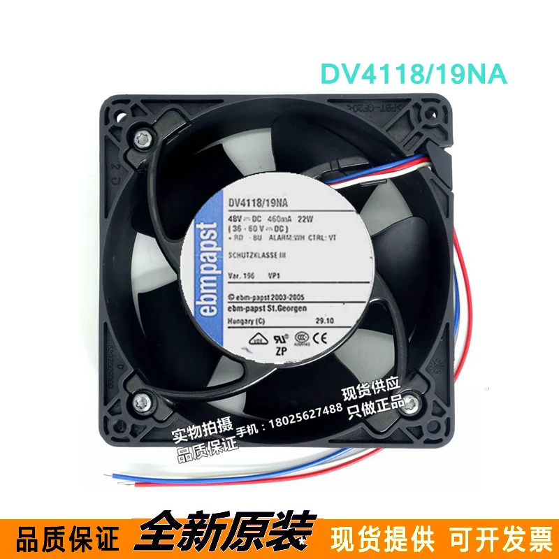 Модель: DV4118/19NA четырехпроводная (Управление скоростью PWM) Размер: 119*119*38 мм Напряжение: 48 в Ток: 0.46A Мощность: 22 Вт Скорость: 6000 об/мин Объем воздуха: 161,9cfm 275 куб. М/час Шум: 60DBA Температура окружающей среды: -50 ~ 72 ° Срок службы: 70000 часов Вес нетто: 375 г
