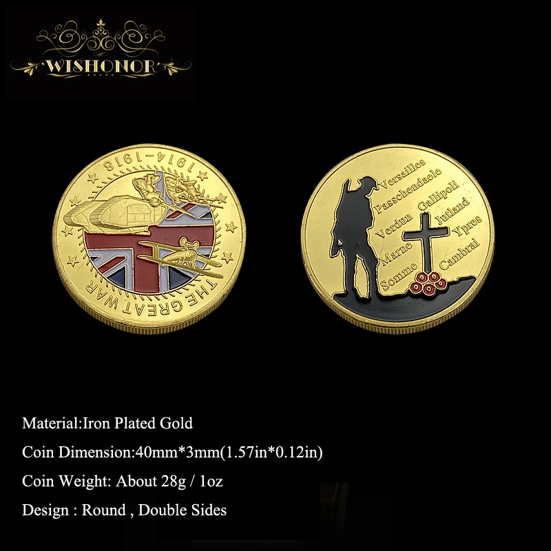 Название:Сувенир Монета с военной символикой 1914 - 1918 большая монета с военной символикой 24K позолоченная военная медаль 40*3 вызов монеты для сбора