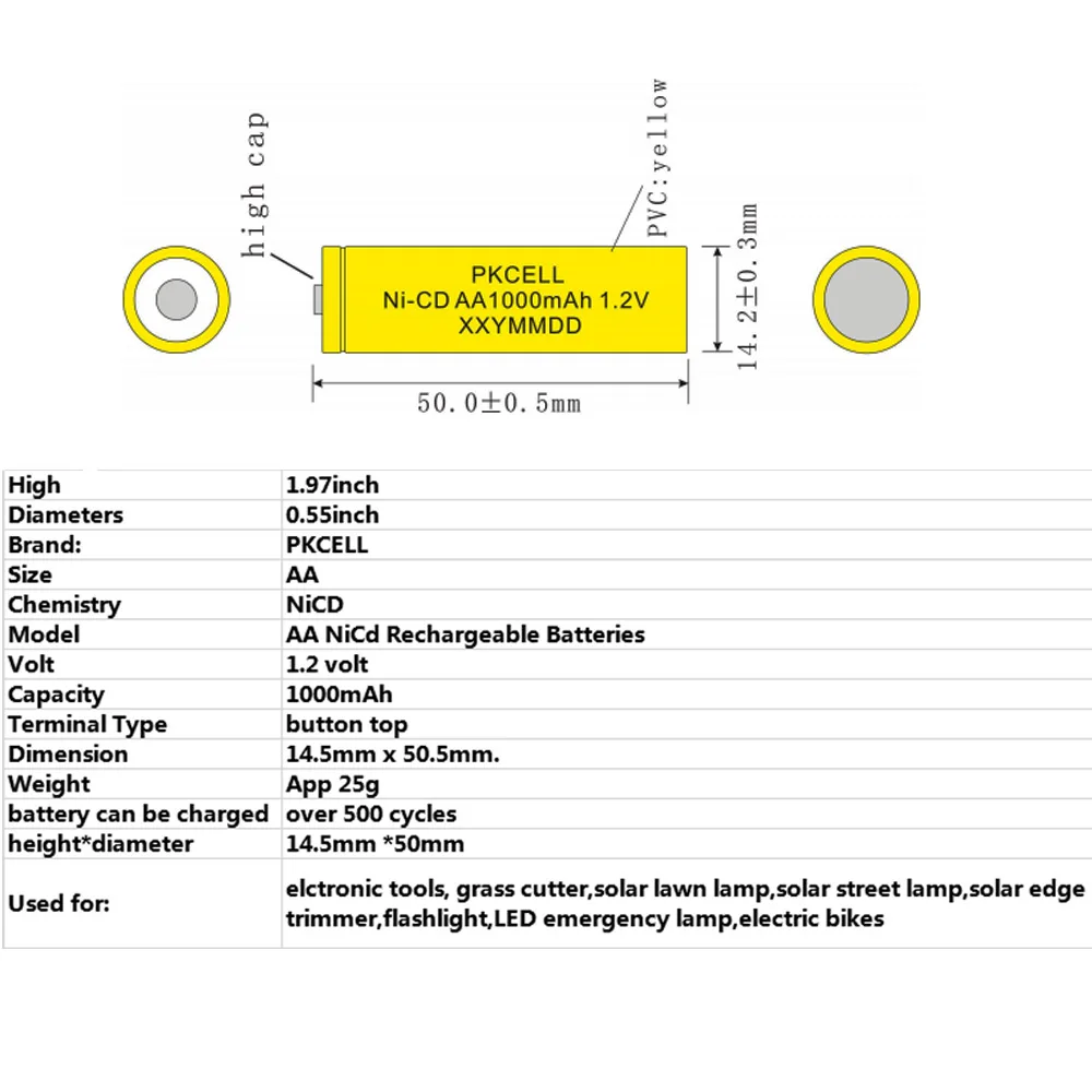16 шт. PKCELL AA 1000 мАч NiCd кнопочная аккумуляторная батарея 1,2 в для пайки