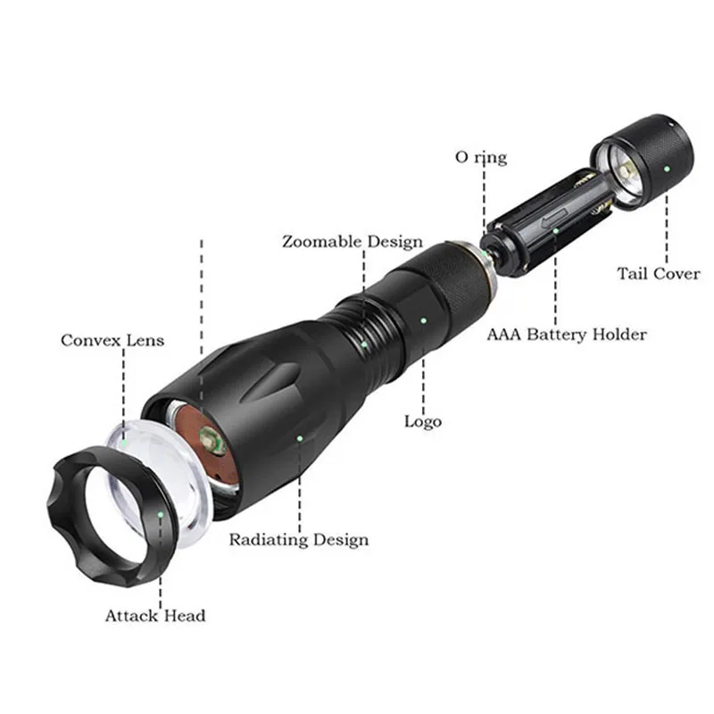 Аксессуары в том числе:Фонарик-1 шт.Корпус 18650-1 шт.1x AAA держатель батареиАккумулятор и заменитель не входят в комплект