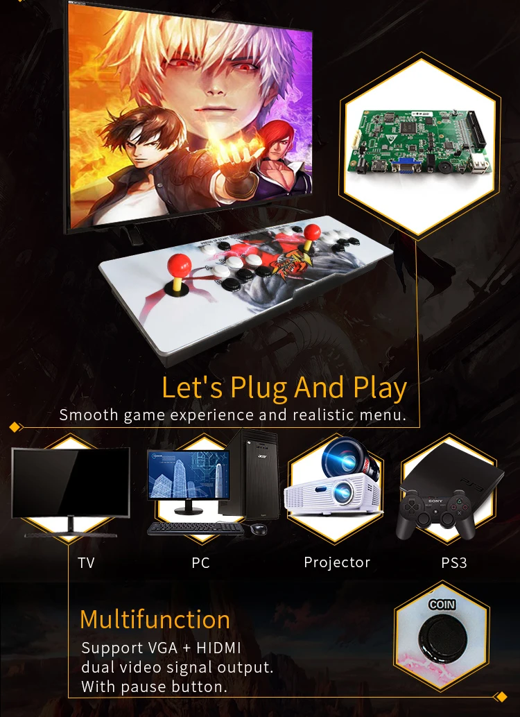 Руки классических аркадных игр Супер высокое разрешение видео Панель для телевизора С 2600/3288/2448 играми Выход VGA + HDMI Может подключаться к внешнему динамику Мощность: 110-220 В WIFI 2448 с функцией Wi-Fi, может быть подключен к WiFi онлайн-системе обновления, онлайн-загрузка и добавление игр. Привет, цвет джойстика и кнопок может заменить, если вам нужно, пожалуйста, оставьте массаж, какой цвет вы хотите, в противном случае, мы отправим как на картинке. Цвет джойстика: красный, желтый, синий. Зеленый, черный, белый и розовый. Цвет пуговиц: красный, желтый, синий, зеленый, черный, белый и розовый. Если вам нужен список игр, пожалуйста, свяжитесь с нами. Если наше изображение не подходит для вас, можете отправить нам ваше изображение, мы можем изготовить для вас!