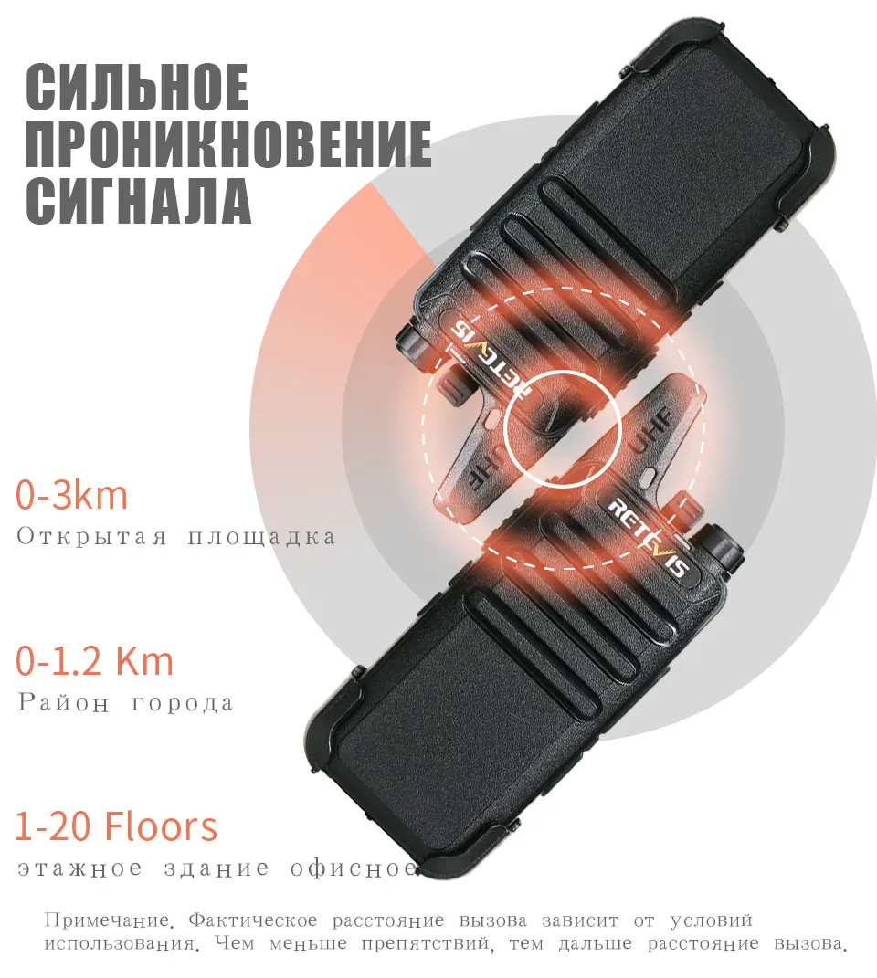 Надежное покрытие сигнала заставило вас почувствовать, что вы разговариваете со своим партнером лицом к лицу. Обычно расстояние вызова в городских районах может достигать 1,2 км, а на открытой местности - 1-3 км.
