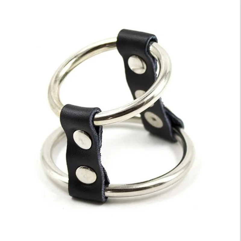 Новинка 2 размера металл + кожаное кольцо для члена кольцо для мужского пениса целомудрия устройство клетка петушок задержка времени сексуальный магазин секс игрушки для мужчин массажер