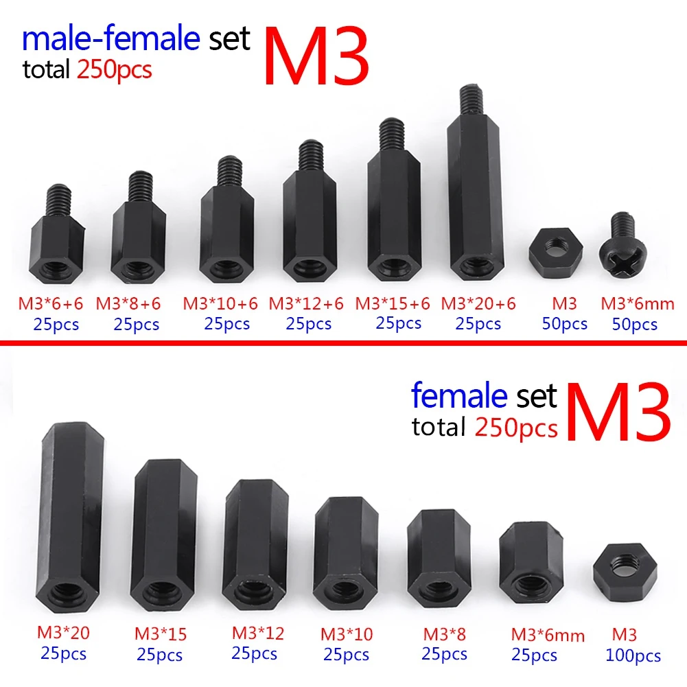 250 шт. распорный Винт противостояние Male папа мама Шестигранная стойка противостояние M2 M3 нейлоновая гайка PCB распорная стойка внутреннее пространство