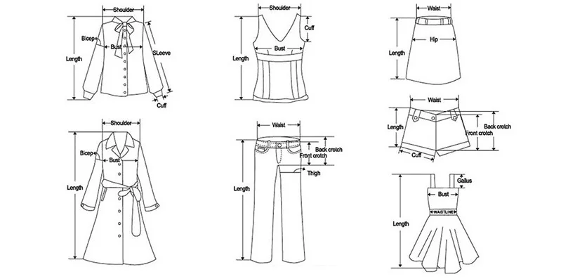 Примечание: 1 дюйм = 2,54 см Пожалуйста, учитывайте разницу в 2-3 см из-за измерения вручную. Если вы не знаете, как выбрать размер, пожалуйста, пришлите нам свой размер груди/рост/вес, мы можем порекомендовать. | |||||||||