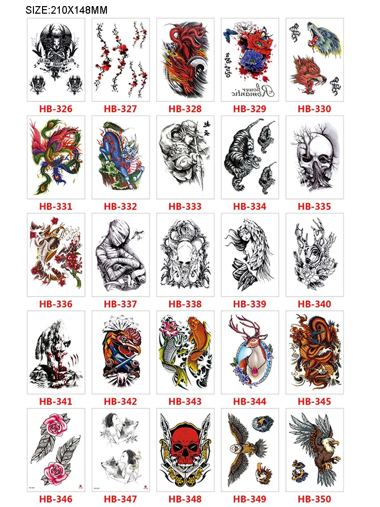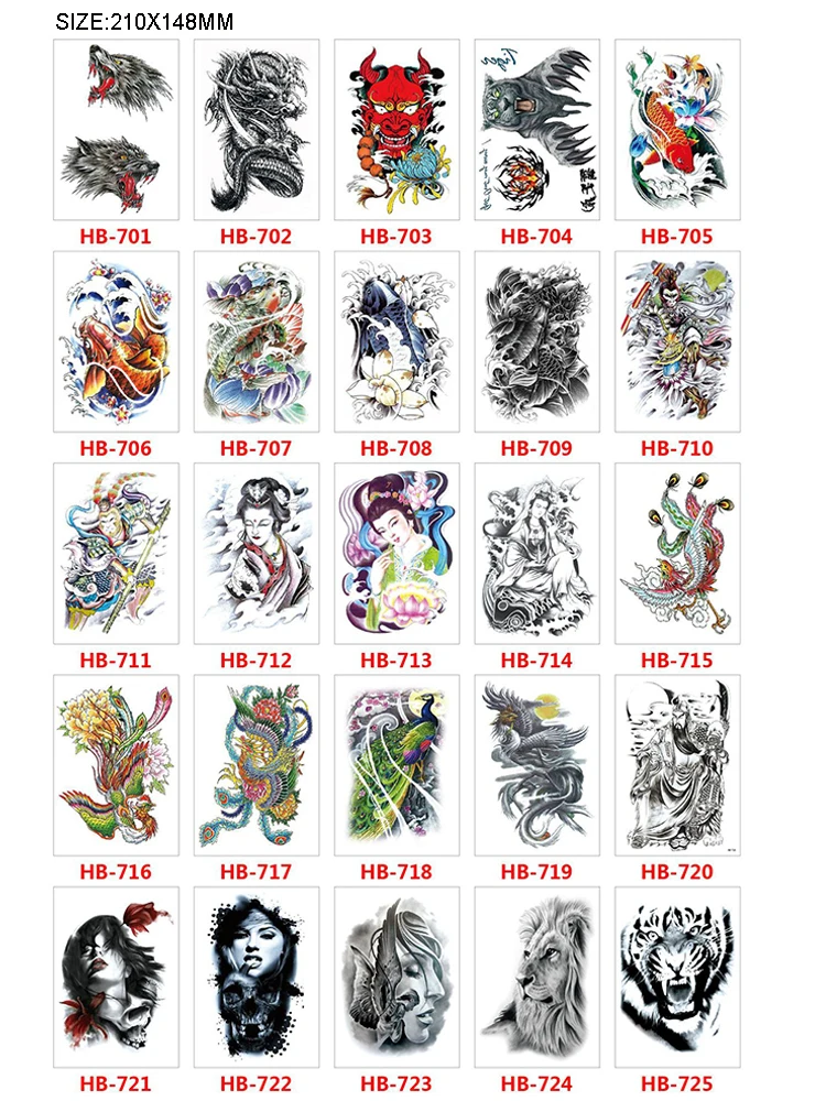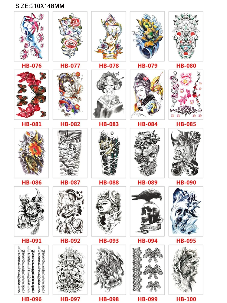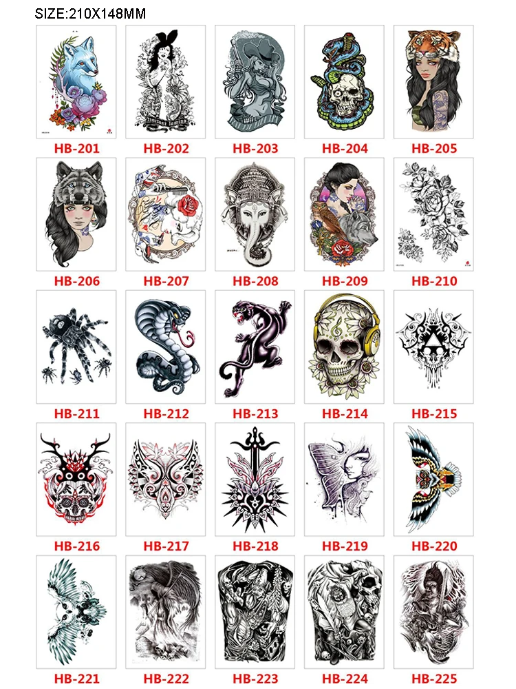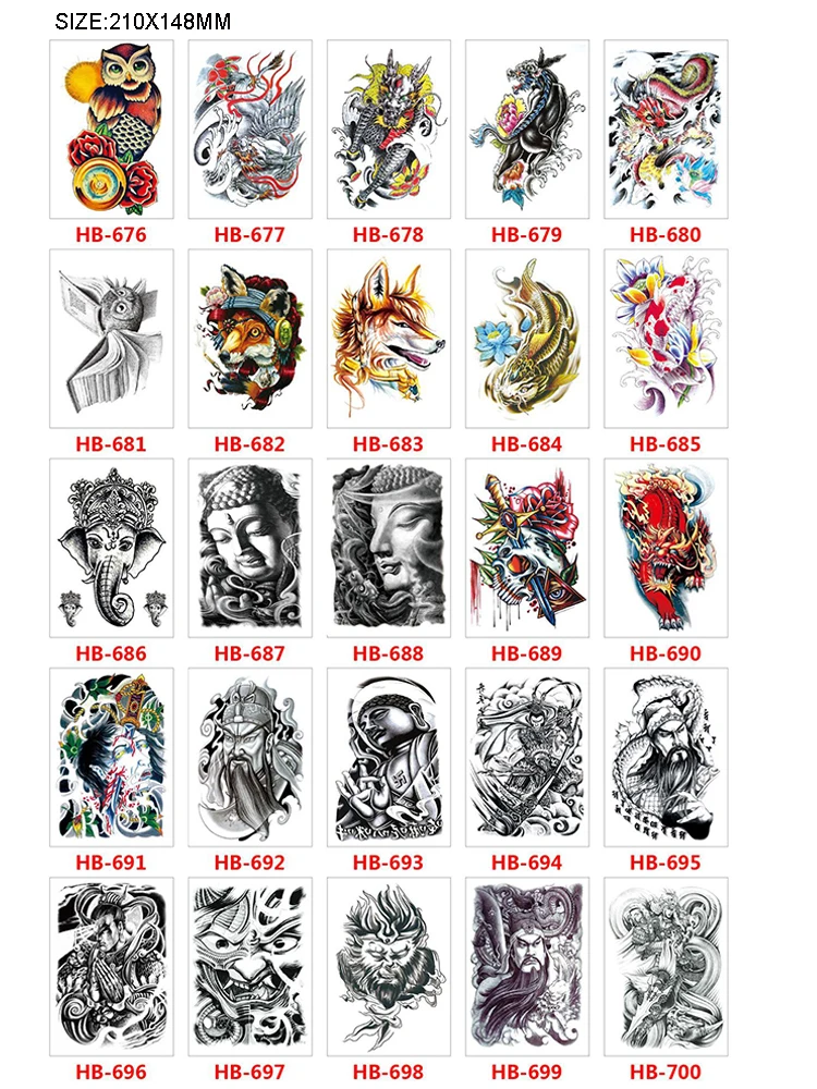 100% Новый бренд Цвет: как на картинке Тема: татуировки Размер: приложение 210*148 мм Технология: Горячее тиснение золотых, серебряных, черных, красочных татуировок; Внешний вид: Классные, блестящие и блестящие; Использование: Временные татуировки для боди-косметики и искусства; Водонепроницаемость и может храниться 7-10 дней.