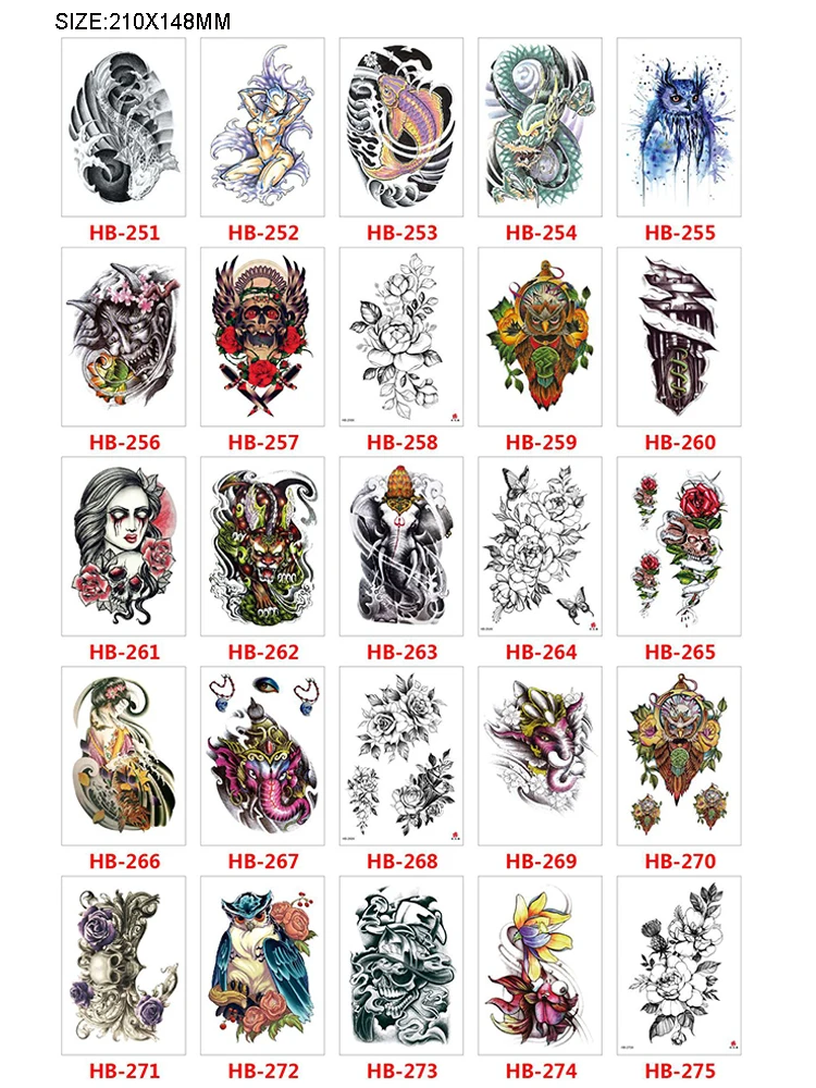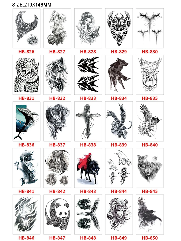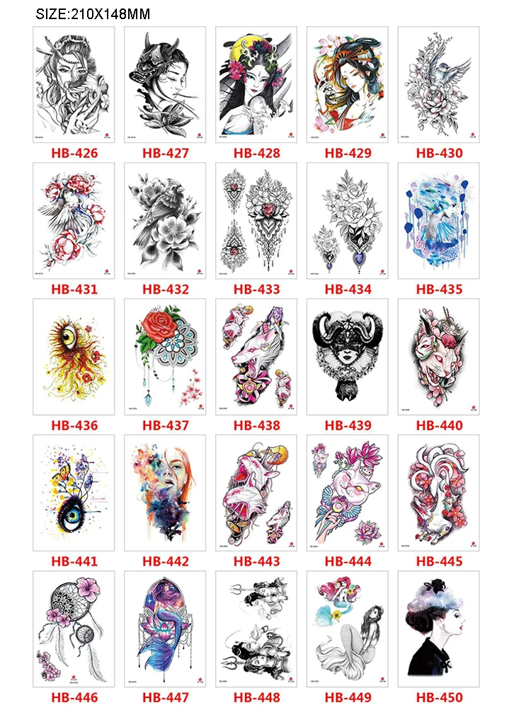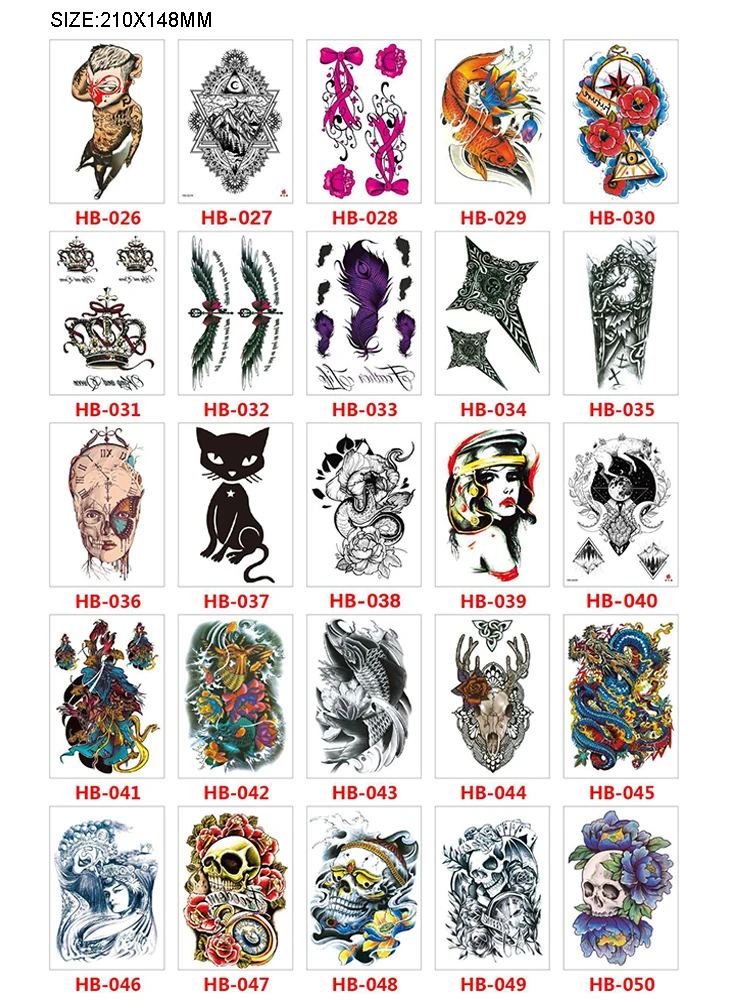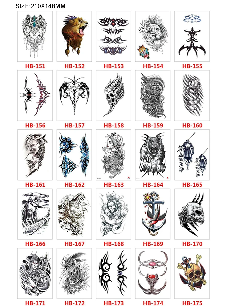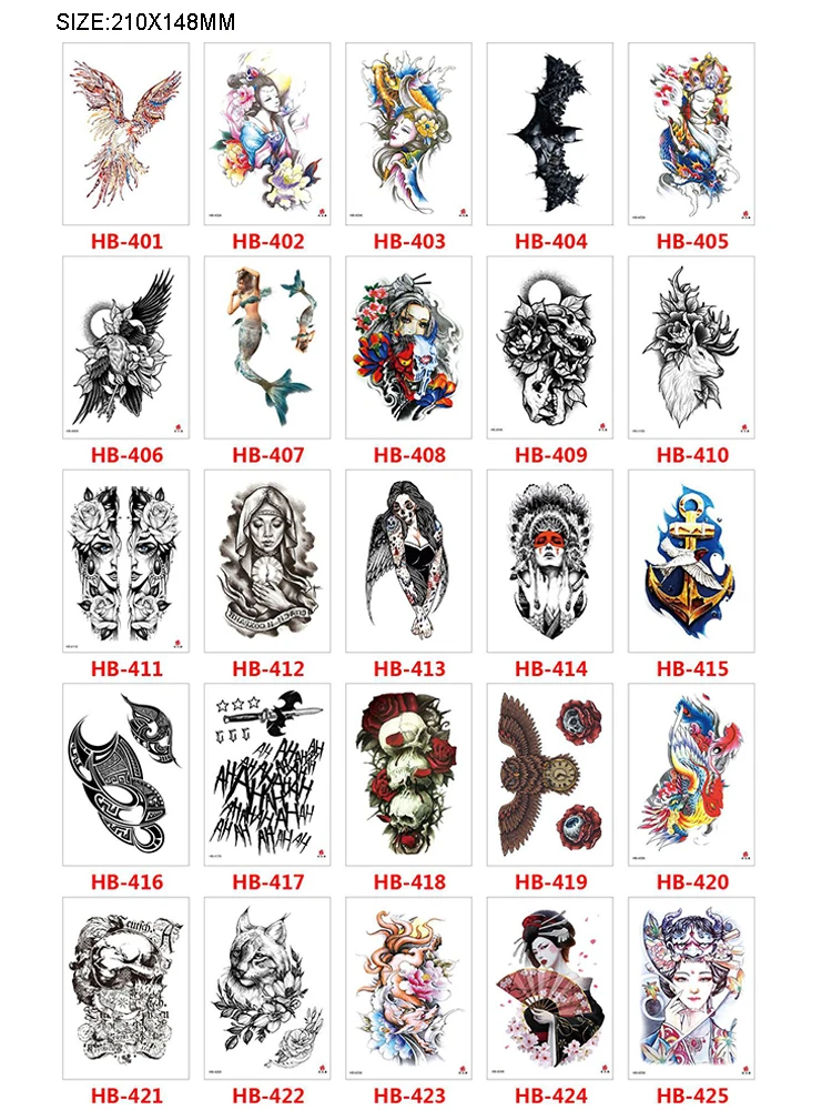 100% Новый бренд Цвет: как на картинке Тема: татуировки Размер: приложение 210*148 мм Технология: Горячее тиснение золотых, серебряных, черных, красочных татуировок; Внешний вид: Классные, блестящие и блестящие; Использование: Временные татуировки для боди-косметики и искусства; Водонепроницаемость и может храниться 7-10 дней.