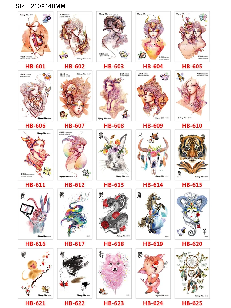 36 листов стикер татуировки (Если у вас есть любимые стили, пожалуйста, сообщите, требуется по крайней мере 2 шт/каждый стиль, если нет сообщения, мы отправим его случайным образом.)