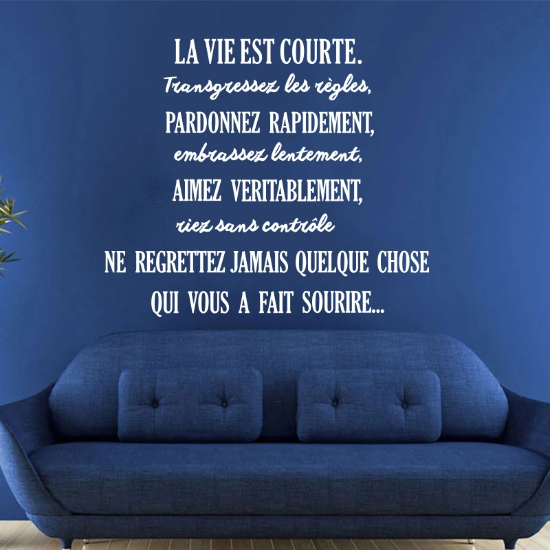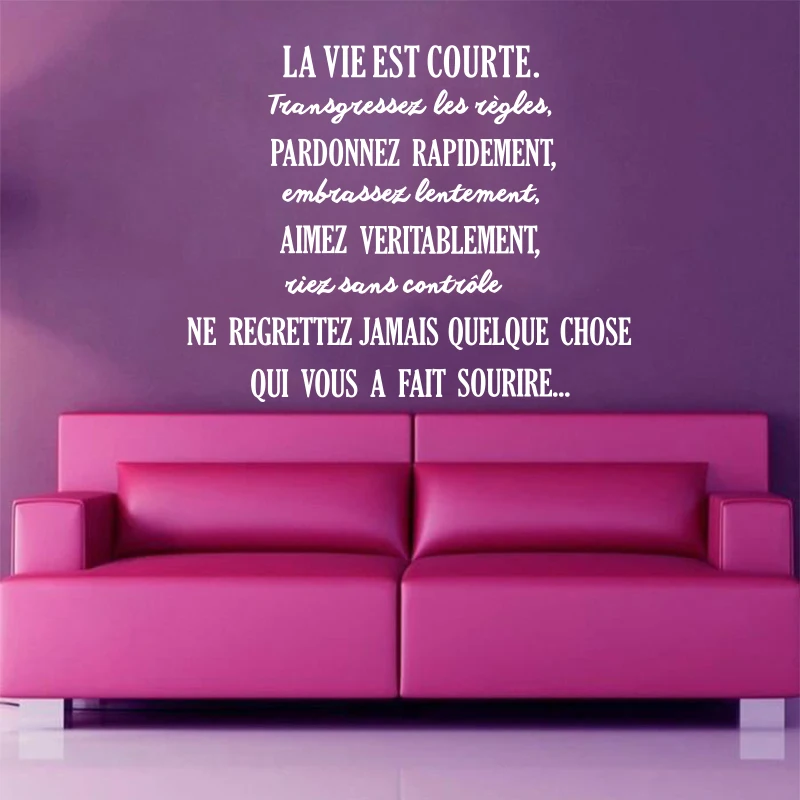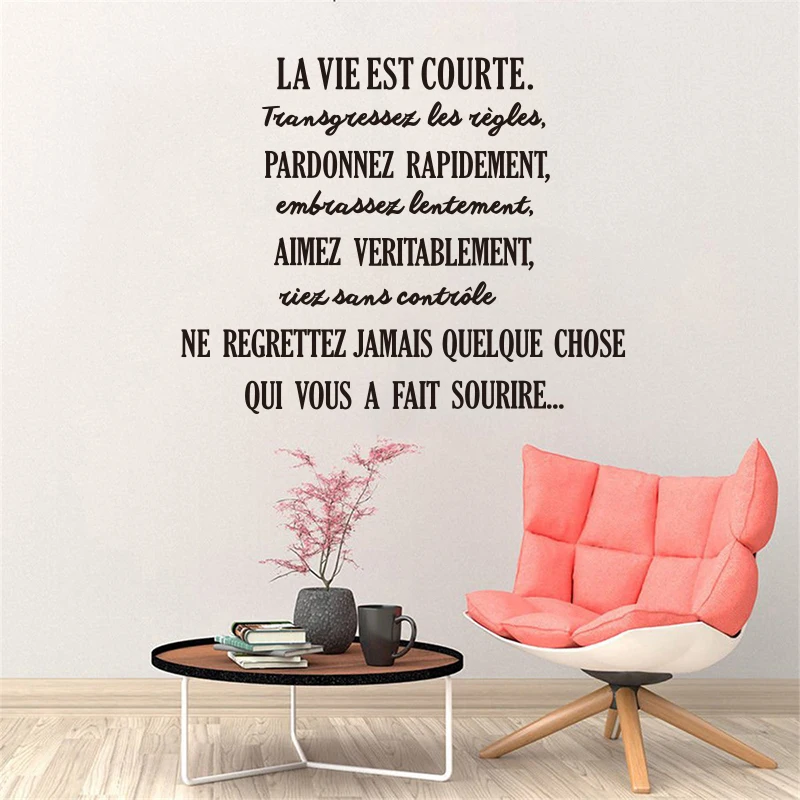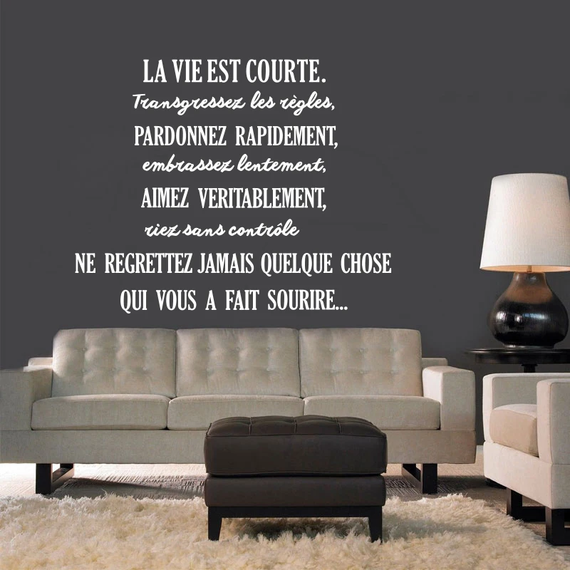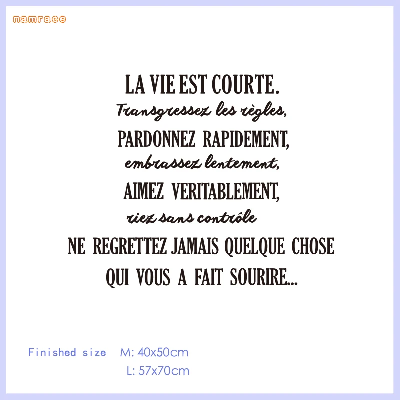 Французский знаменитый поговорка La Vie Est Courte Съемные Виниловые настенные наклейки художественные обои постер для гостиной украшение дома живопись DW1007