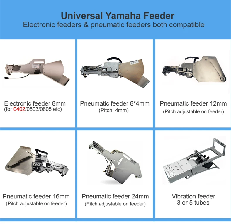 7. Работа сСтандарт YamahaПневматические фидеры (8 мм/12 мм/16 мм/24 мм/Вибрационный Фидер) и электронные фидеры (8 мм/12 мм/16 мм).