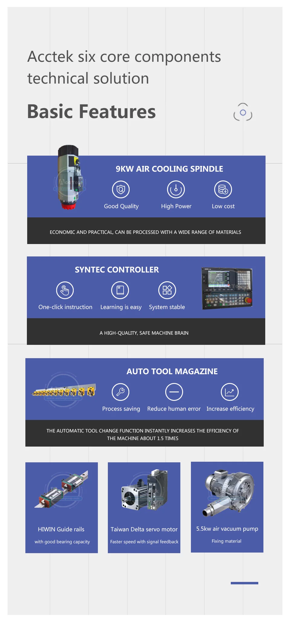 | Опционные части | 1. Шпиндель с водяным охлаждением (китайский или итальянский бренд воздушного шпинделя) |