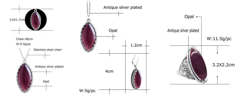 Weight:Necklace: 9.5g/pc;Earring:5g/pc,Ring:11.5g
